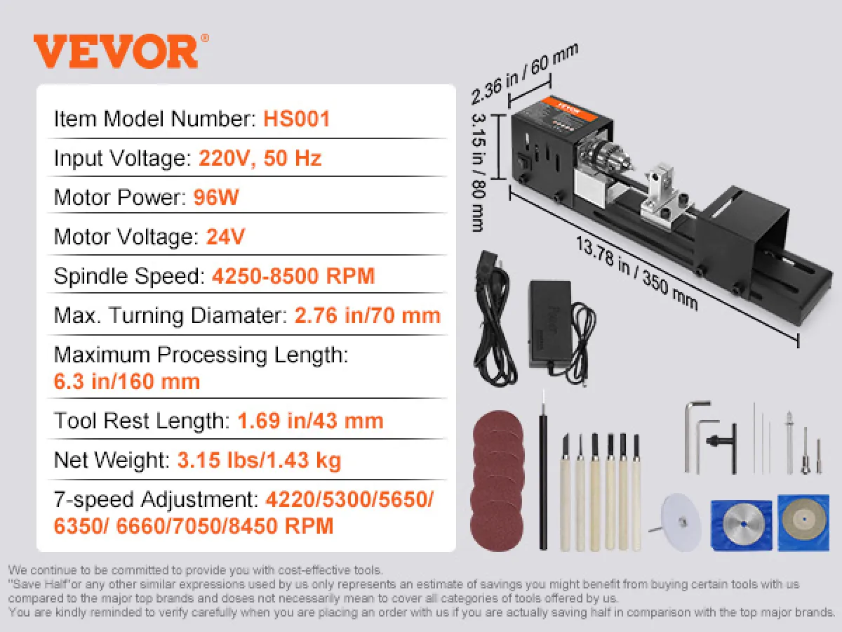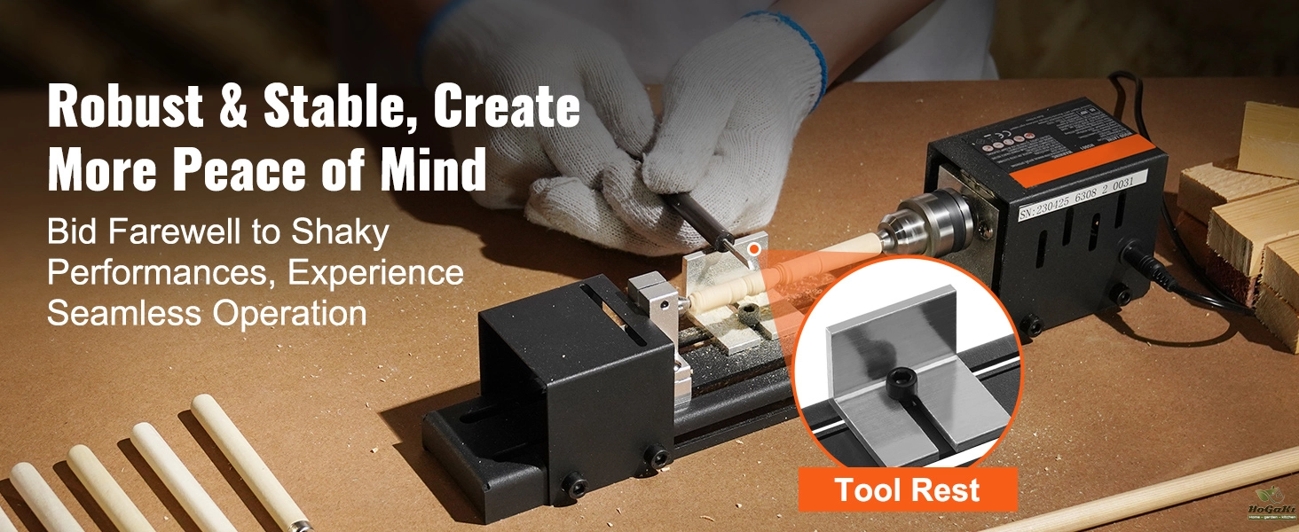 【Sturdy & Stable】: Featuring a high-quality aluminum alloy base and a solid steel headstock, our mini lathe machine minimizes vibrations, ensuring precise and stable operations.