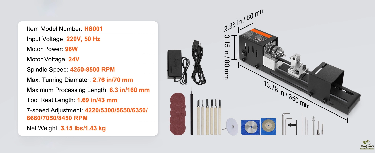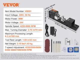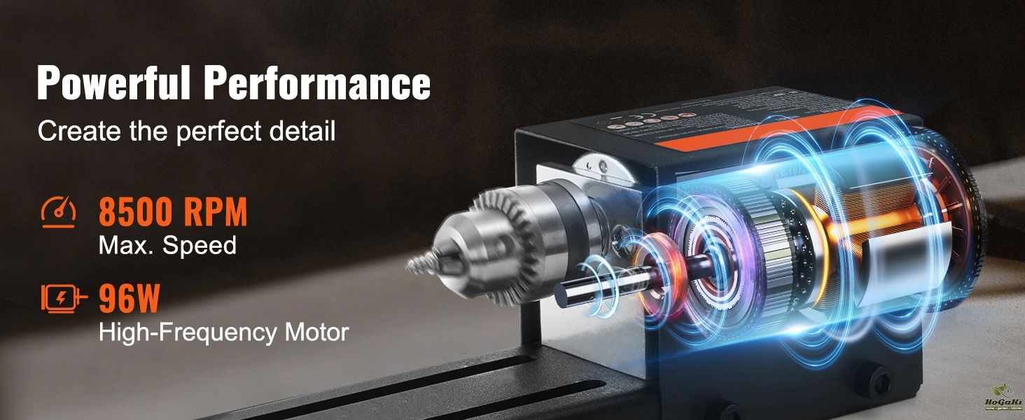 【Powerful Motor】: The mini lathe features a 96W high-frequency motor, delivering a maximum speed of 8500 RPM, allowing users to easily perform high-speed cutting and planning, enhancing work efficiency and processing quality.