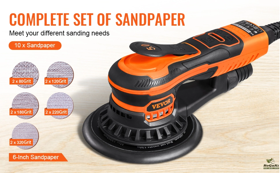 6-Speed Precision Control: With 6 available speeds ranging from 4000 to 10,000 RPM, our electric orbital sander adapts to every task with precision and ease. Whether you're working on delicate surfaces requiring gentle polishing or need high-speed sanding for rapid material removal, this palm sander delivers professional results.