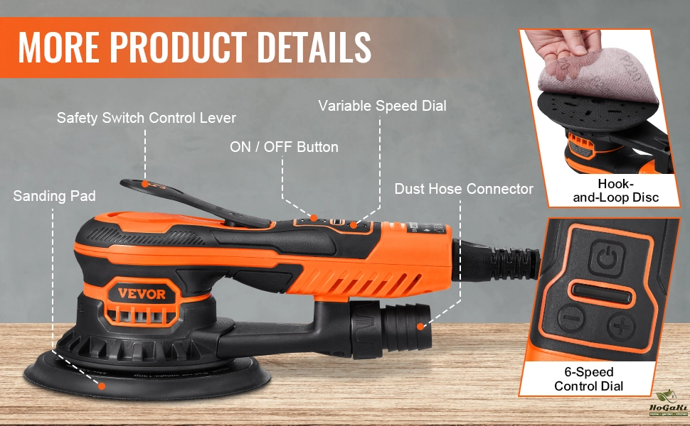 Enhanced Safety: Our electric random orbital sander features an "instant stop" function that that halts rotation when the handle is released, providing added safety during operation. It also includes a dust connector and hose, allowing for easy connection to a vacuum cleaner for efficient dust collection.