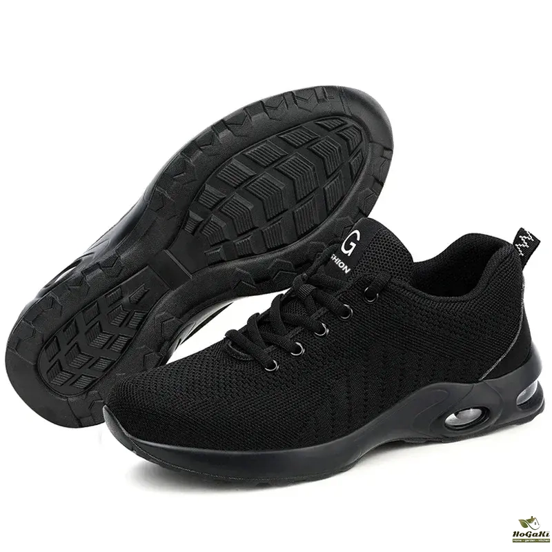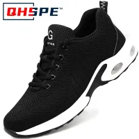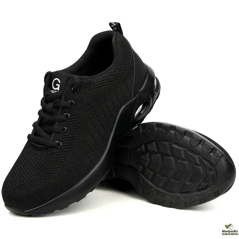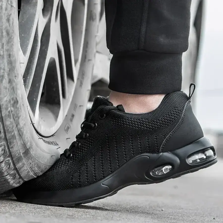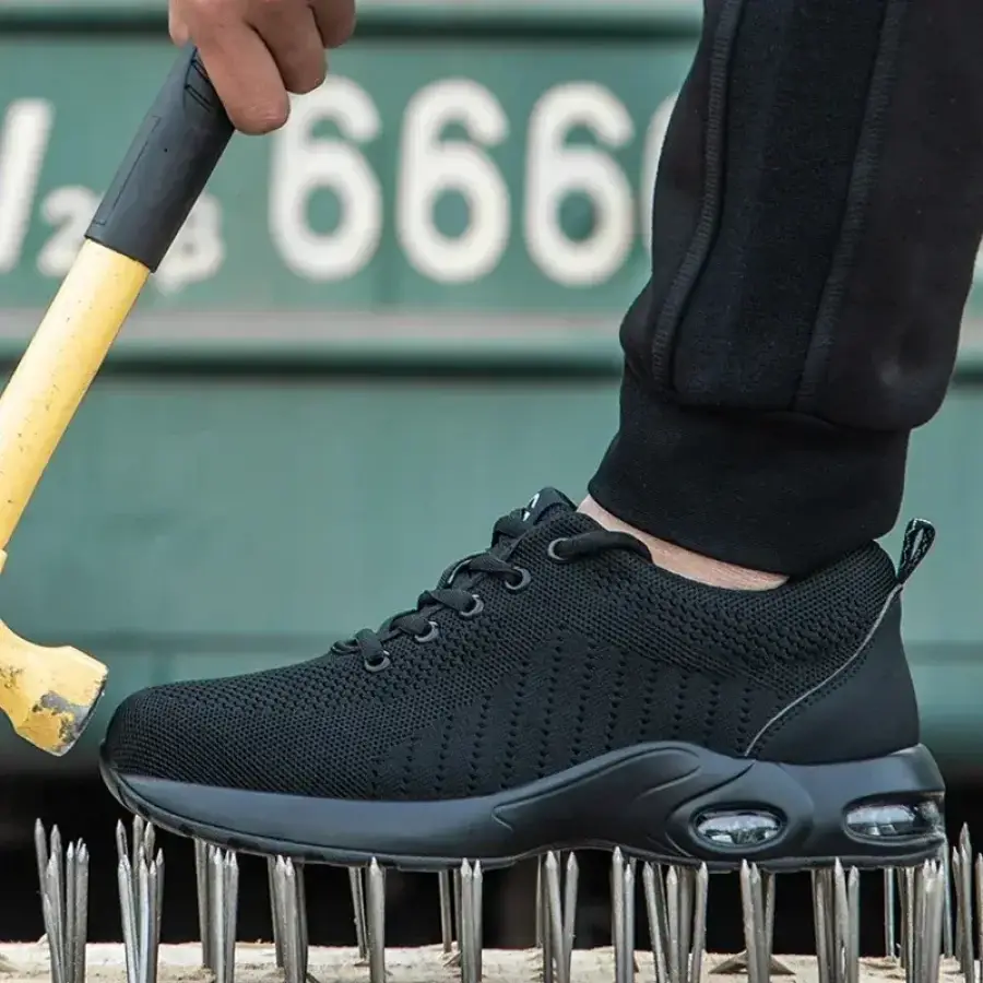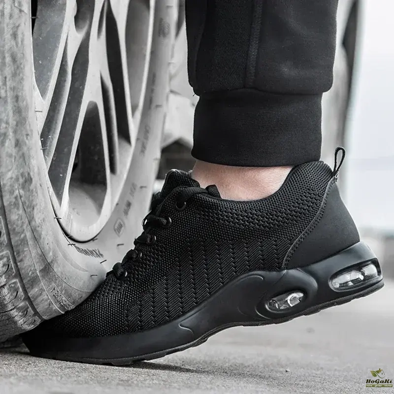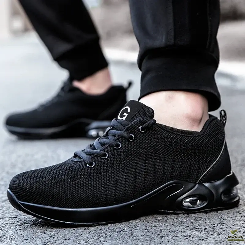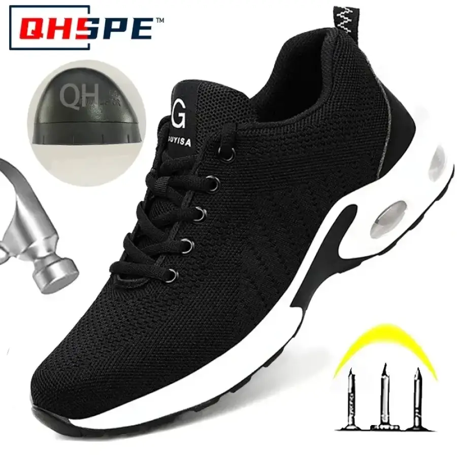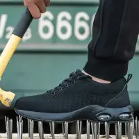 Men's Summer Steel Toe Safety Shoes Anti-Crush And Piercing Breathable Lightweight Outdoor Pure Black Work Shoes
