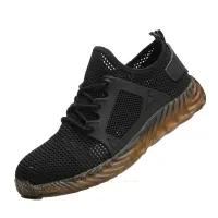 Men's Summer Steel Toe Safety Shoes Anti-Crush And Piercing Breathable Lightweight Outdoor Pure Black Work Shoes
