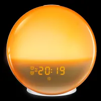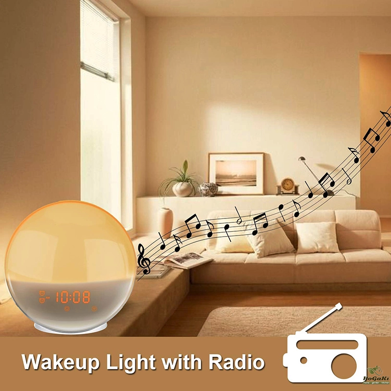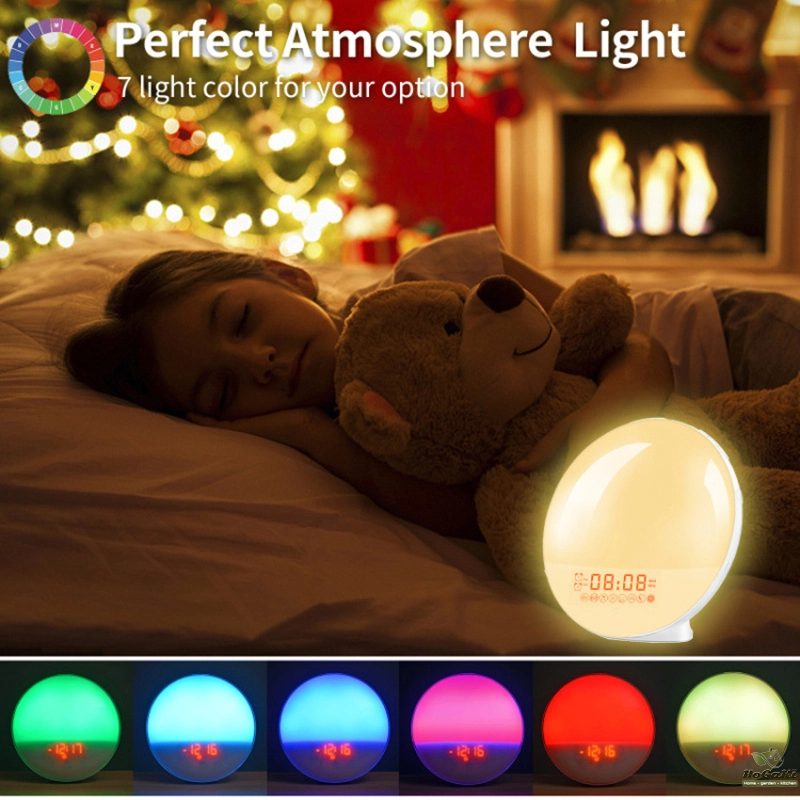 【Wake Up Light with Sunrise simulation】This Sleep Aid digital alarm clock is designed for everyone. in fact, especially for heavy sleepers and kids. Sunrise simulation light with 7 natural sounds&FM radio will be on gradually from 10% brightness to 100% by 30 minutes before alarm setting time,you can set the process to 20 minutes or 10 minutes. This wake up light gradually increases from soft morning Red to Orange until your room is filled with bright white light. By the time light has filled the room your preset natural sound wakes you up naturally, getting you ready for the day ahead.