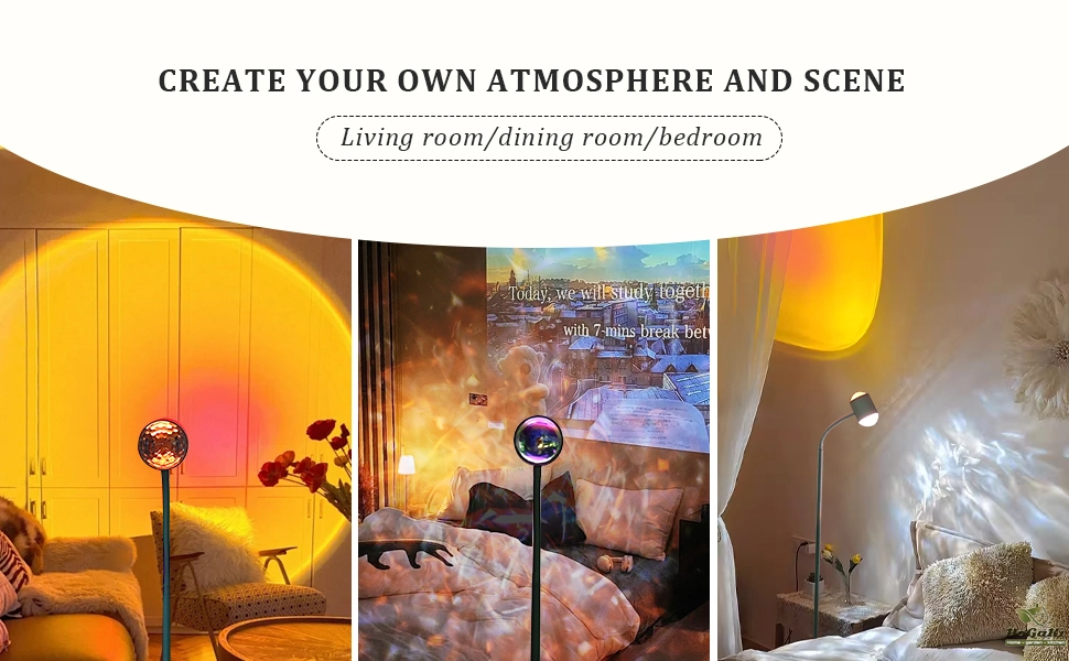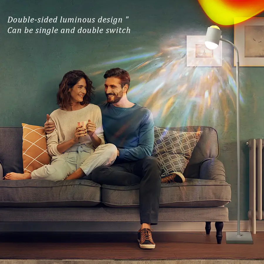 [Double-sided floor lamp] The double-ended floor lamp is designed to match the water wave and sunset lamp to provide the light effect of dynamic wave ripples and create a romantic sunset atmosphere. This allows you to customize the lighting to your liking, allowing you and your family to enjoy a relaxed and romantic atmosphere.