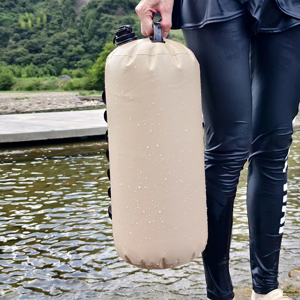 1. Versatile Outdoor Utility: This water storage bag serves as a swim buoy with high buoyancy, ideal for outdoor swimming. It also functions as a weight bag for securing tents, tarps, and umbrellas, providing stability in various outdoor settings.