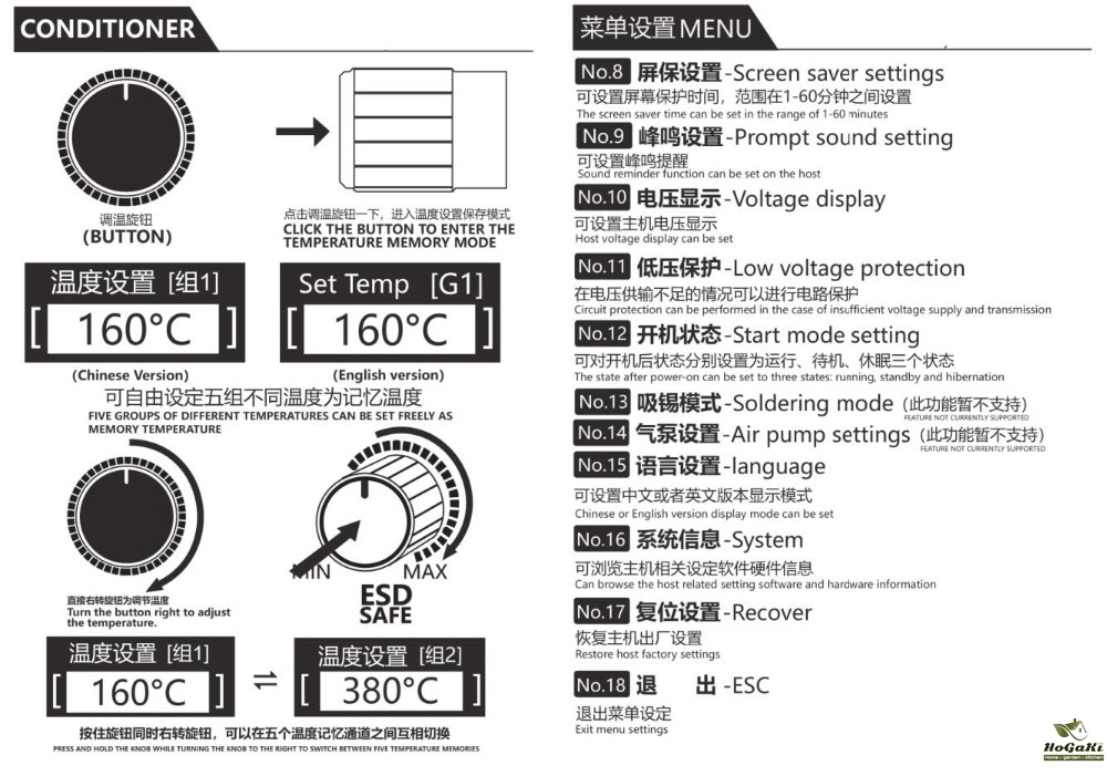2. Under normal working conditions, short press the encoder once to enter the temperature enhanced mode for temporary welding of large solder joints. When the temperature is enhanced, the ten decimal point flashes quickly as a reminder. The enhanced temperature and time can be set in the menu. Automatically restore the original set temperature.