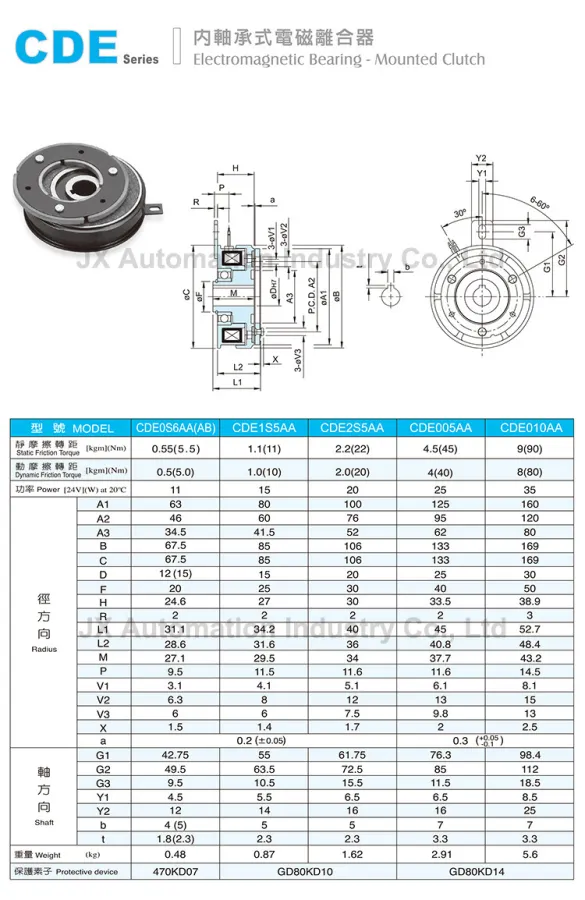 Taiwan CHAIN TAIL Electromagnetic Clutch DC24V CDE2S5AA CDE2S5AD Inner Bearing Clutch 20W For Strapping Machine