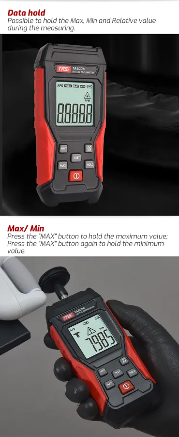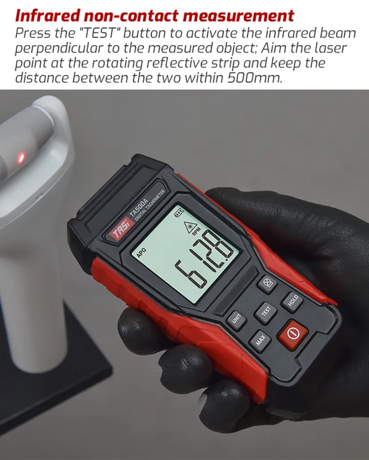 TA500 series digital tachometer that can measure the RPM or surface speed and distance. It is applicable to electric power, steel, petrochemical, aviation, fan manufacturing, pipeline ventilation system, underground warehouse and other occasions.