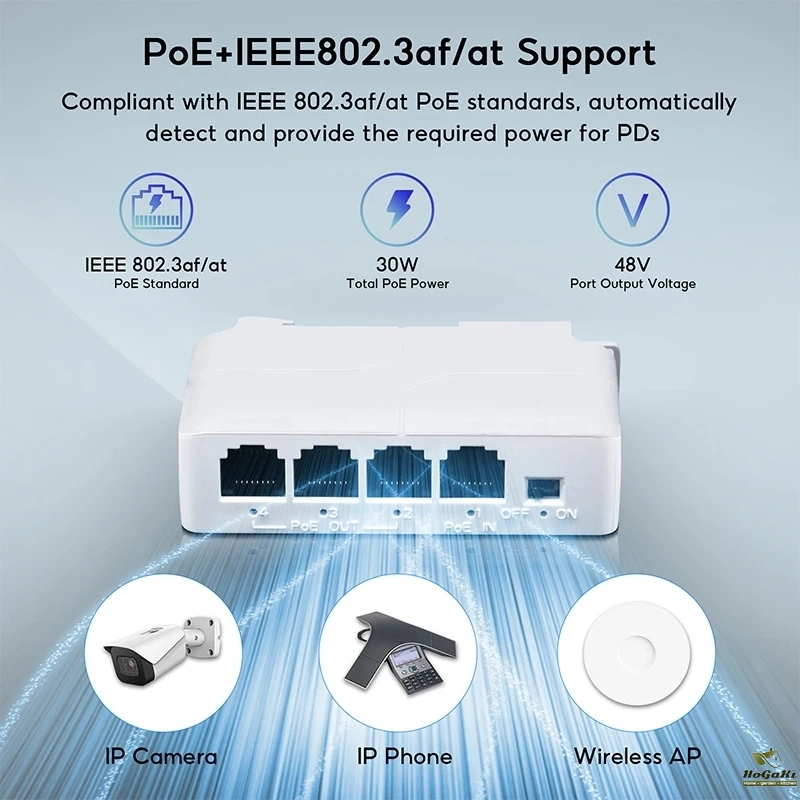 2.Automatically detects and protects PoE equipment from being damaged by incorrect installation