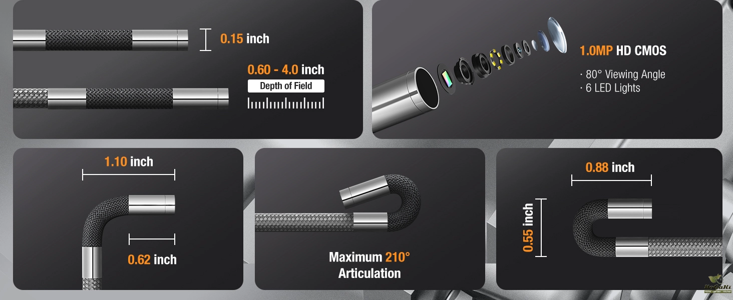1. Precision Inspection with Two-Way Articulation - The 2-way articulating borescope can be effortlessly controlled to navigate in various directions, providing optimal views. This allows you to easily inspect engine components without the need for disassembly. SAVES YOUR TIME & MONEY on Inspections!