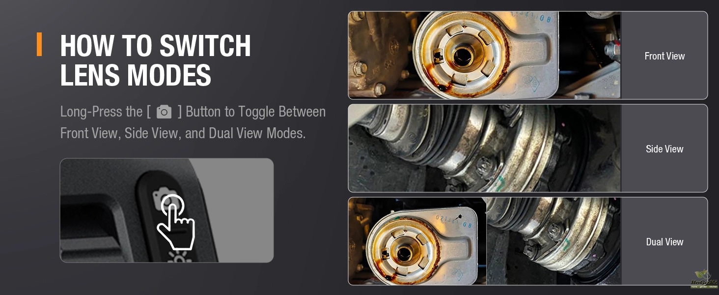 1.Dual Cameras for Enhanced Versatility: Our Articulating Borescope features two cameras – a forward-facing lens and a side-viewing lens. This dual-camera setup allows you to effortlessly switch between views, providing you with the flexibility to inspect various angles and corners.