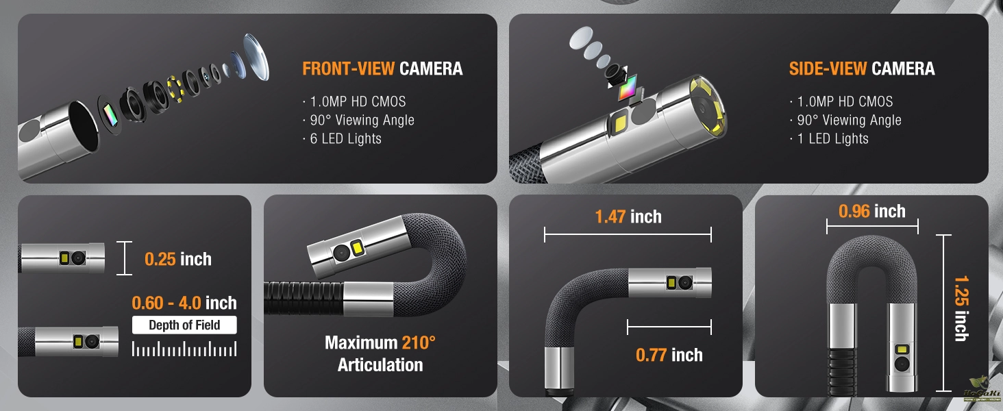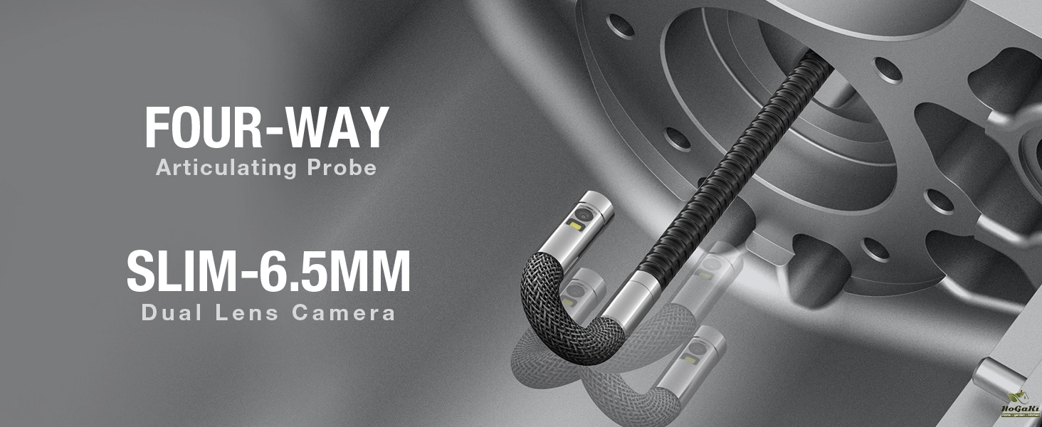 4-Way Articulating Borescope - The Great Professional Inspection Tool for Efficiency & Cost-Saving - This inspection camera features an incredibly agile scope tip, controlled by a joystick for 360° rotation and 210° flexion, enabling detailed inspections of engine components from multiple angles without disassembly. The exceptional maneuverability and precision articulation ensure every detail is captured, streamlining the inspection process and significantly reducing the time and labor costs associated with extensive teardowns.