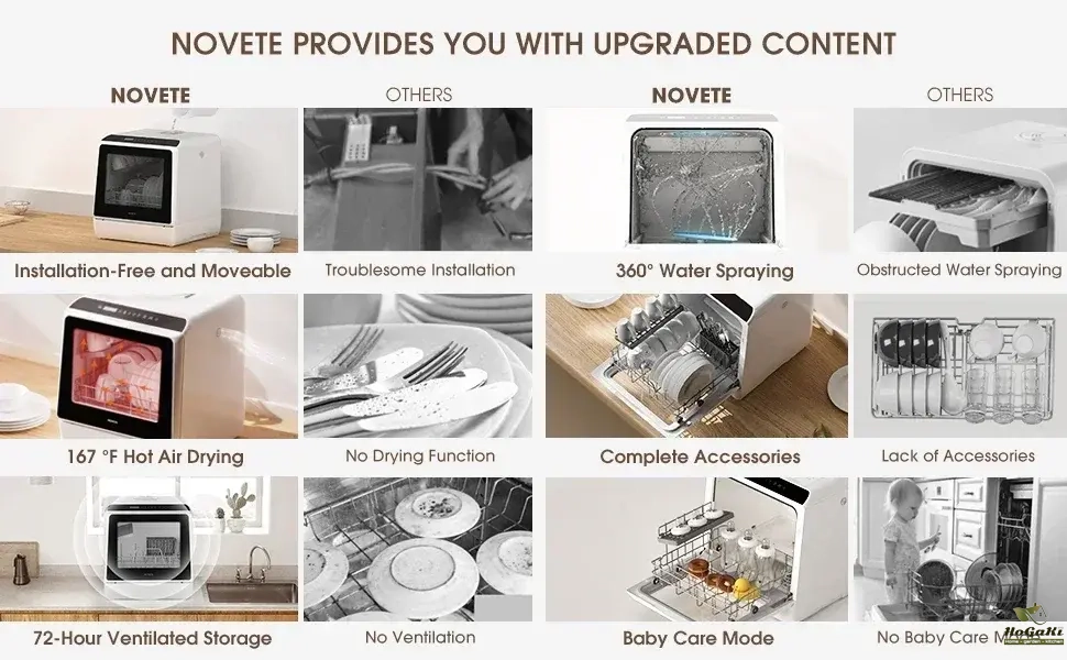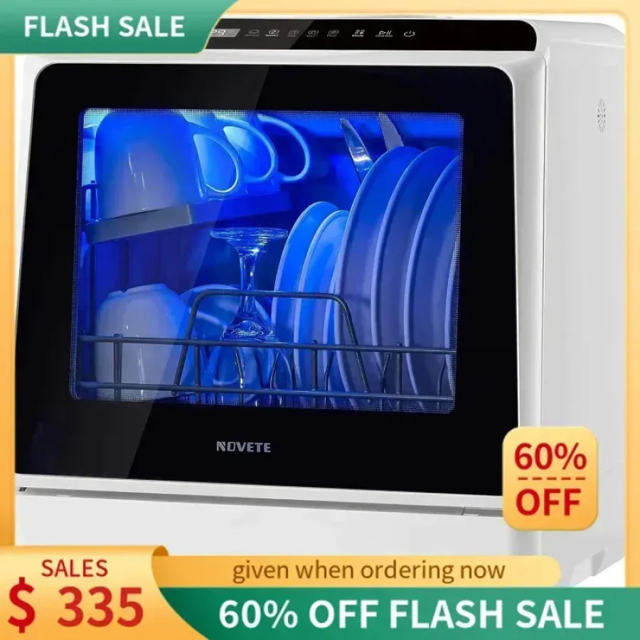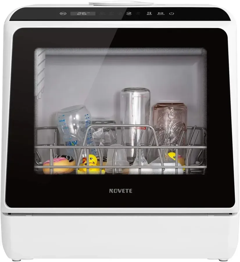 *This NOVETE dishwasher has undergone manufacturer’s quality tests to ensure proper operation, so a little residual water in the unit is NORMAL.