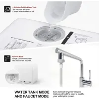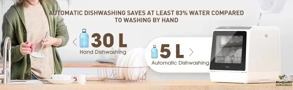 【NO INSTALLATION NEEDED】This countertop dishwasher supports 2 water supply modes, including a faucet mode and water tank mode;a built-in 5 L water tank allows instant use when fully filled.The automatic water level indicator lets you know when the correct water level has been reached;to use the faucet mode, simply connect the water inlet hose to the machine and faucet