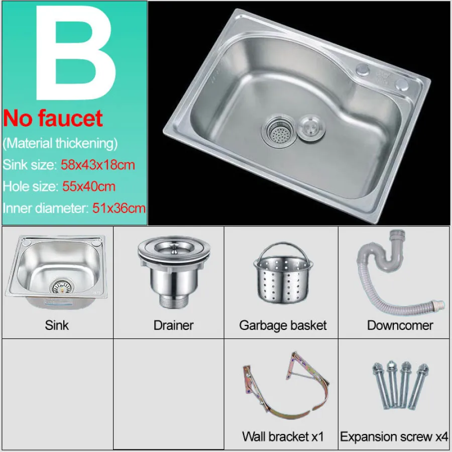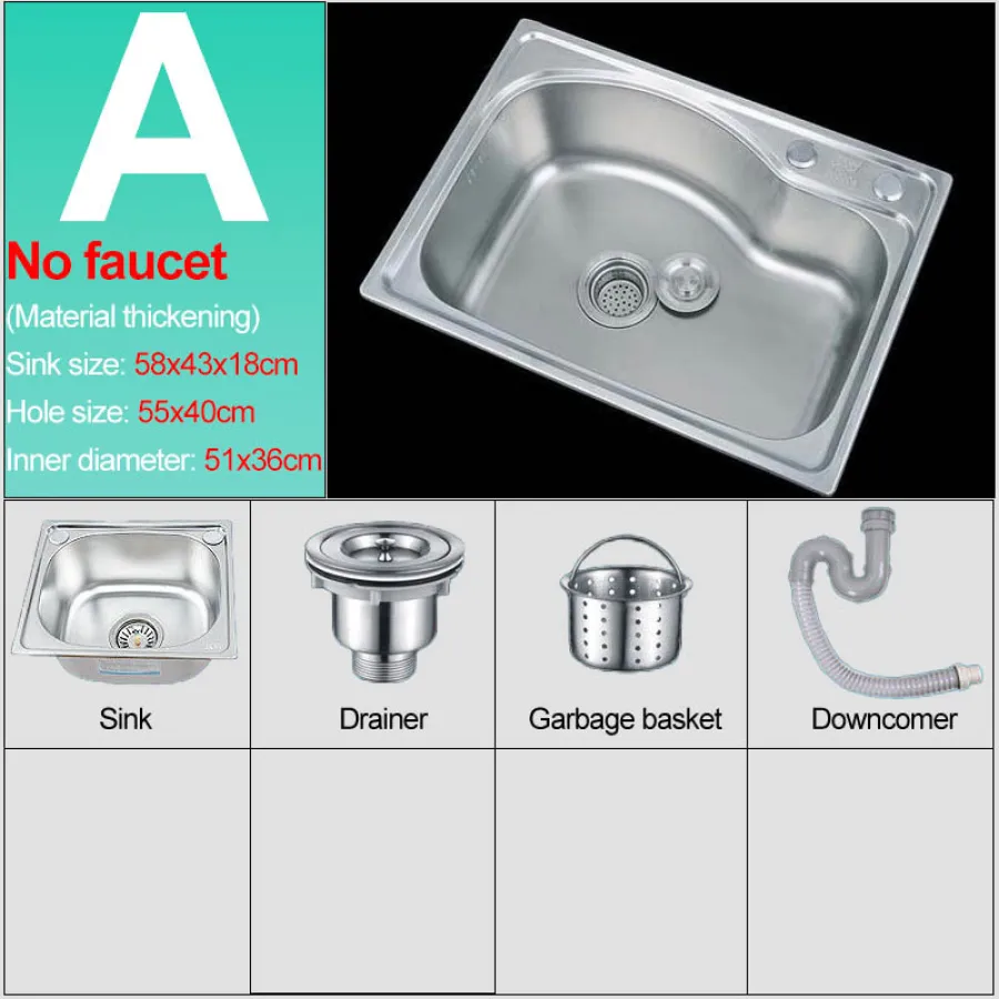Sink dimensions:38*33*18cm,42*37*18cm,45*39*18cm,48*35*18cm,50*40*18cm,52*38*18cm,58*43*18cm;