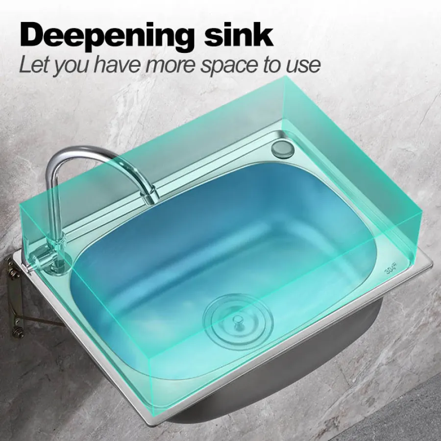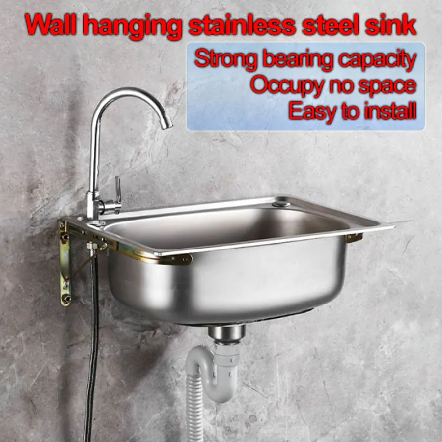 304 Stainless Steel Single Bowl Sink with Wall-Mount Bracket – Effortless Elegance for Your Kitchen