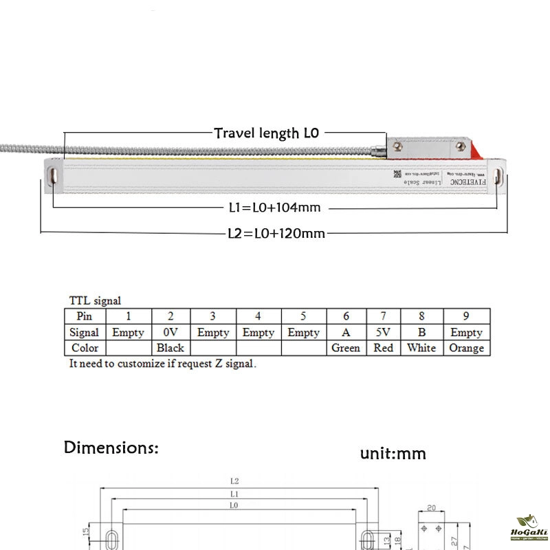 High Precision 0.005mm Slim Linear Scale TTL 100 150 200 250 300 350 400mm 20x28mm Small Linear Encoder Grating Ruler Sensor
