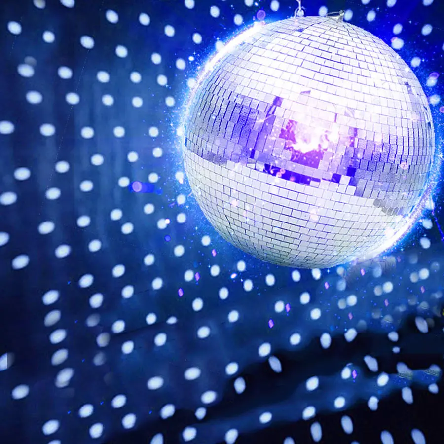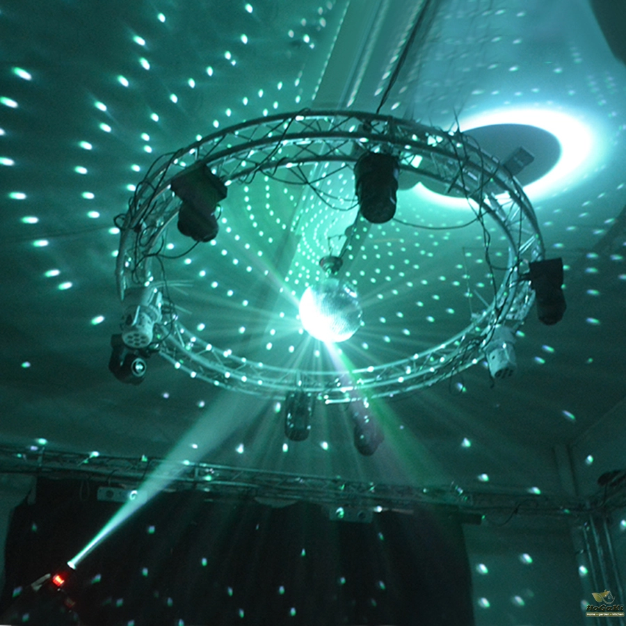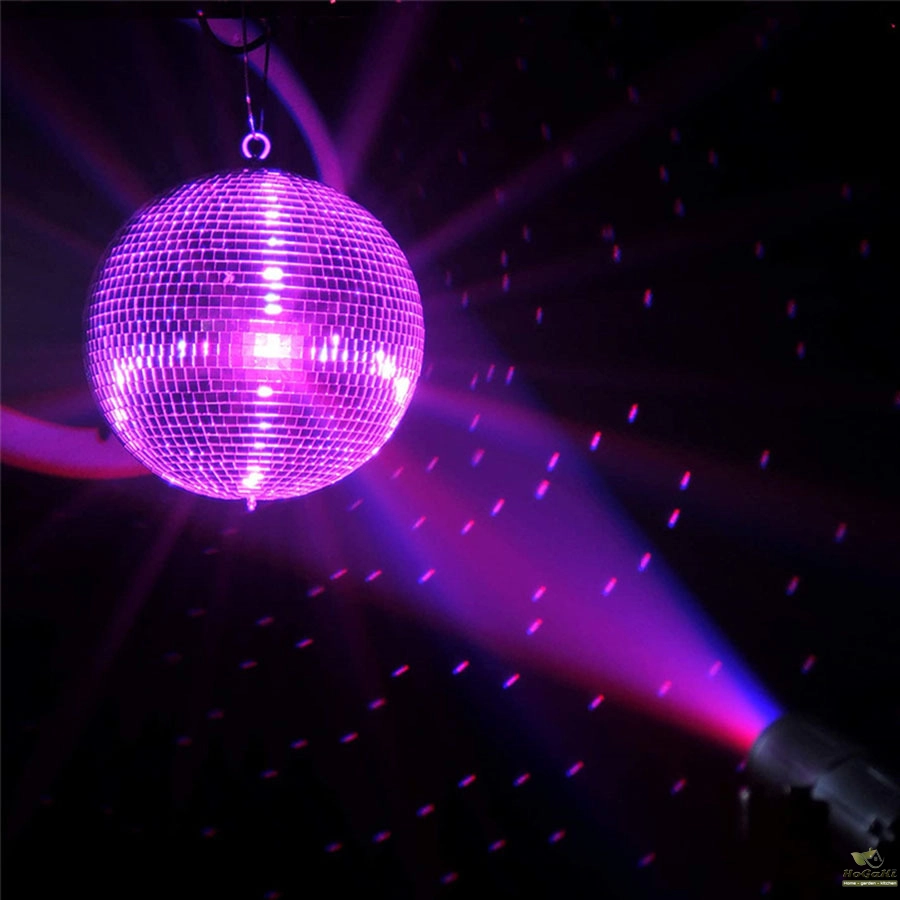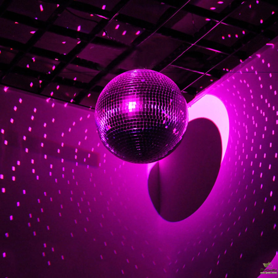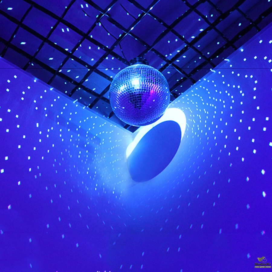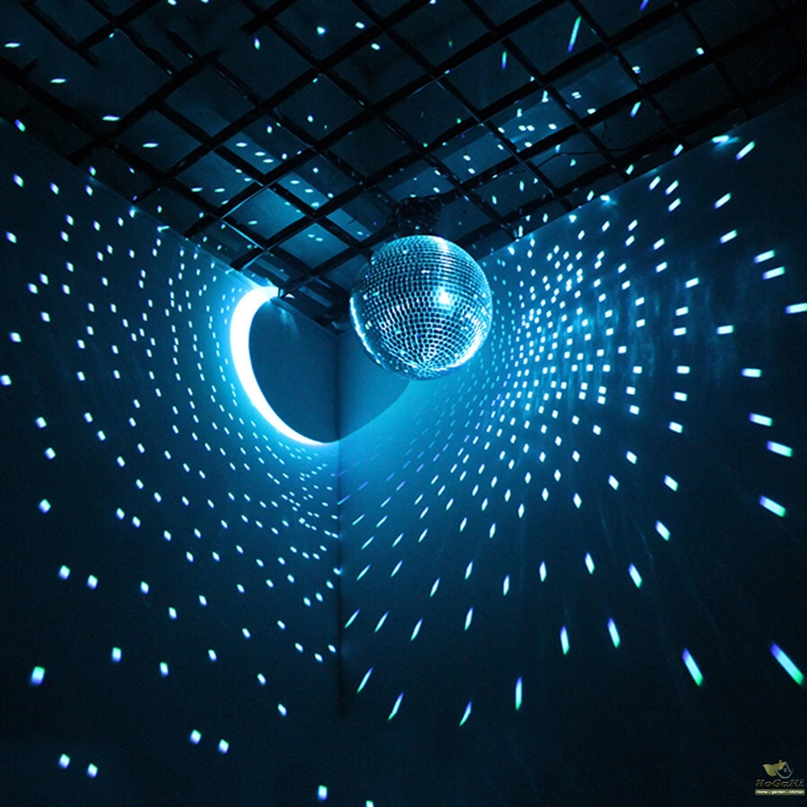 The rotating mirror ball reflects the light on its surface. In this way, splendid light effect will be created.