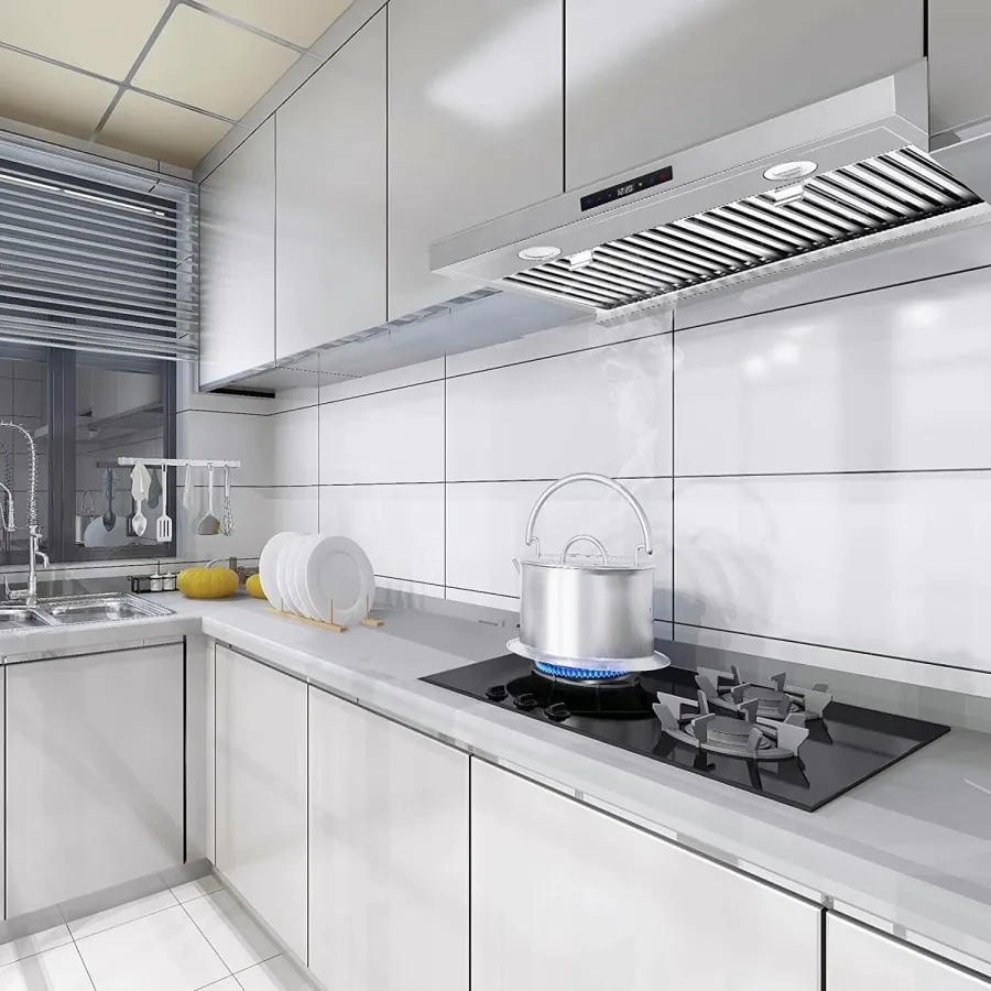 This under cabinet range hood 30 inch can offer up to 800 CFM strong air-flow ,designed with high quality dual motors, help to keep your kitchen clean and non-smell.