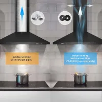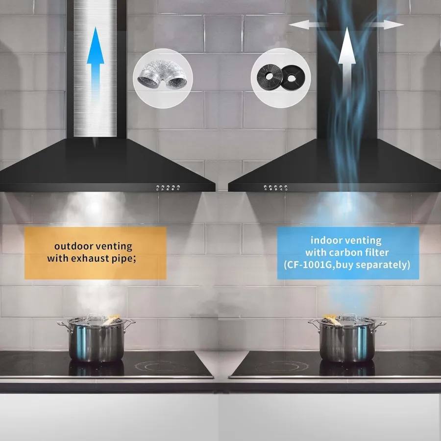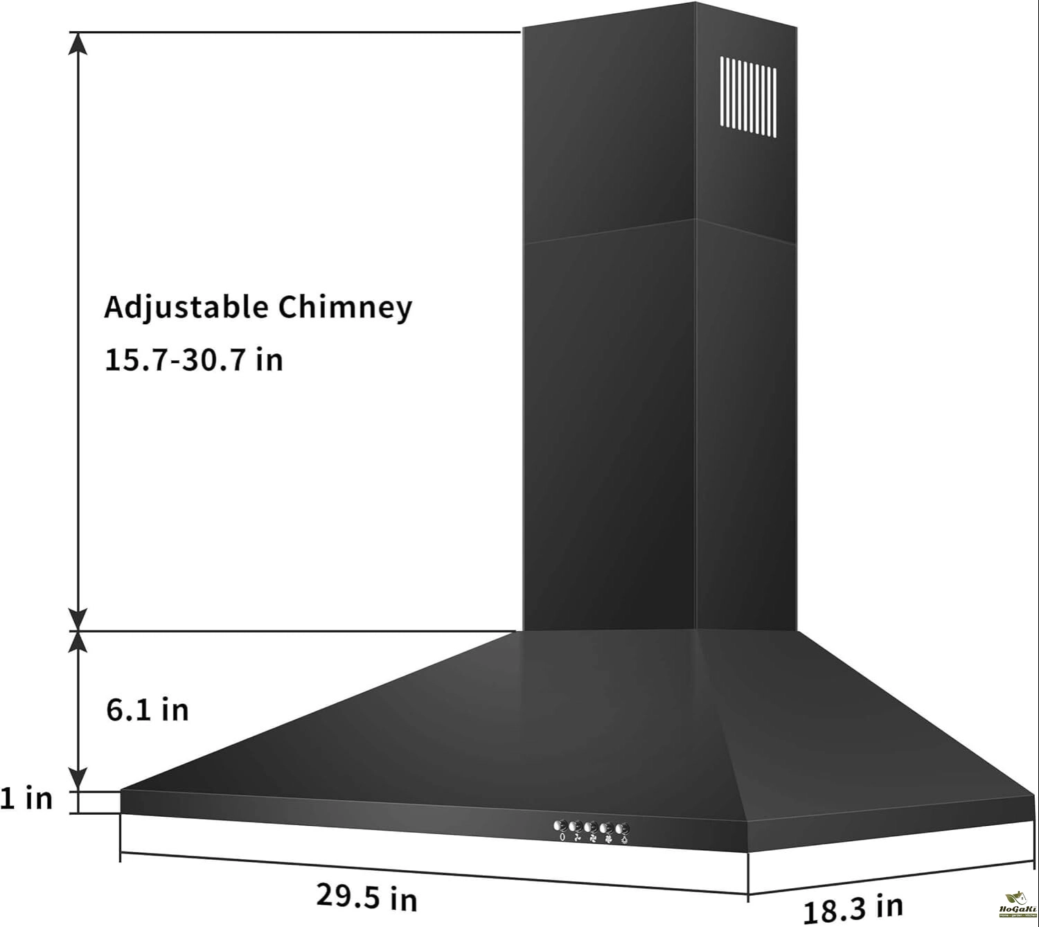 Made of Premium 430 grade brushed stainless steel, classical pyramidal hood fits most kitchen decors. All stainless steel body, easy to clean, brings you a durable range hood at an affordable price. 30 inch range hood can fit most kitchen space.