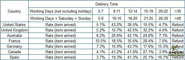 If you can't find the estimated delivery time on the product detail page, you can look at the following table for reference.