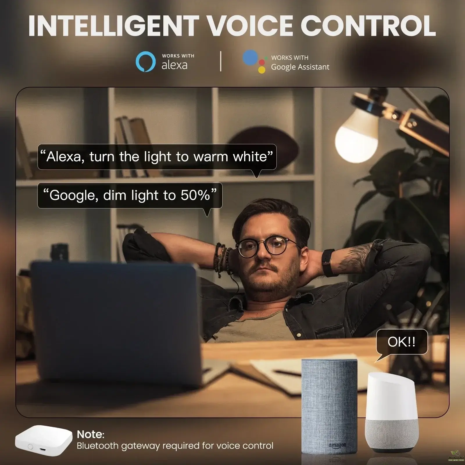 Activate and adjust the light via voice assistant such as Google Home and Alexa , to control the on/ off, color temp/brightness and etc, making you life easier by hands free.