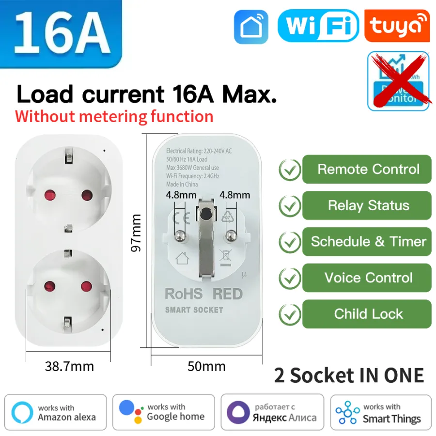 TUYA Smart Plug WiFi/Zigbee3.0 Socket EU 16A/20A With Power