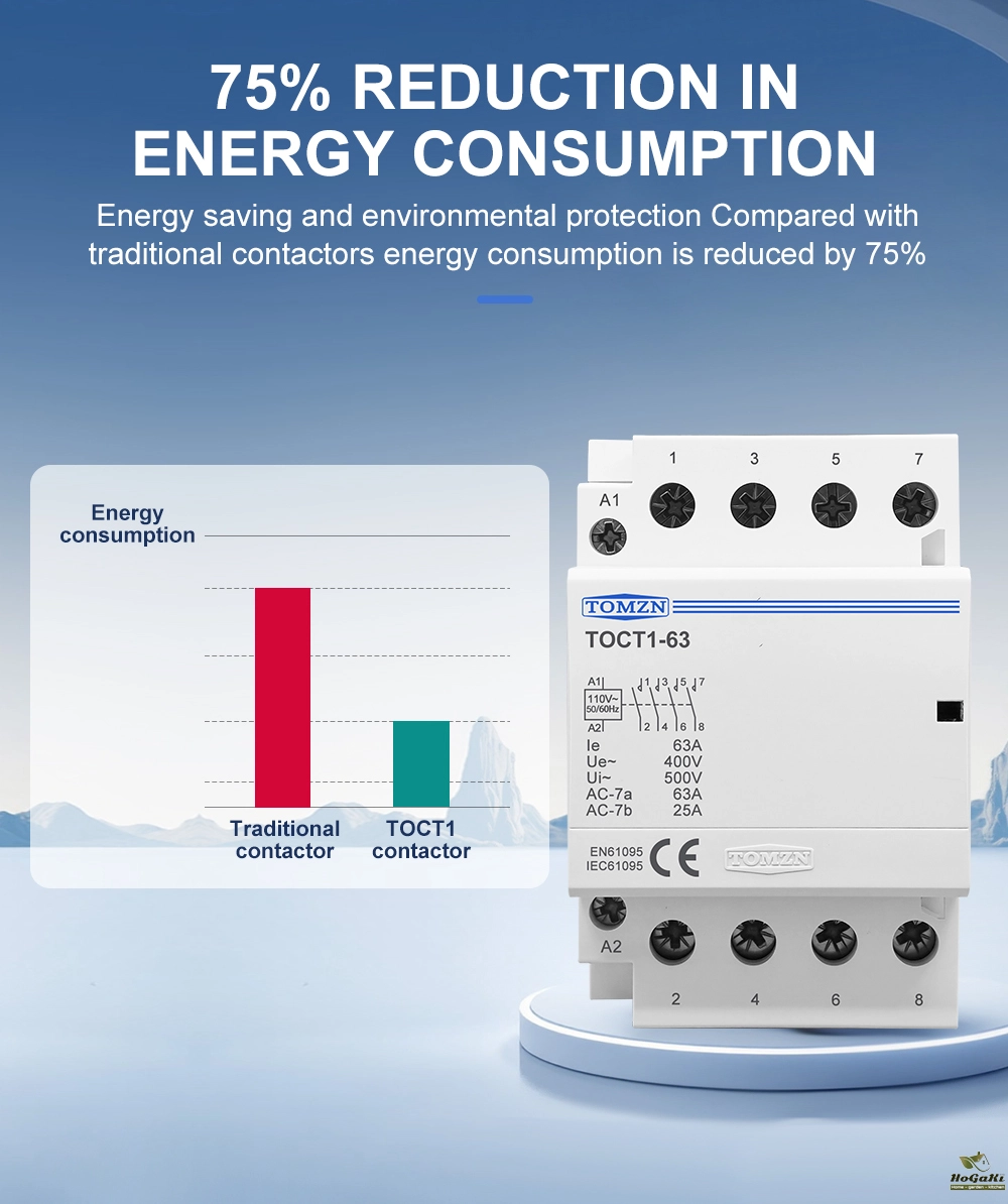 TOCT1 2P 25A 220V/230V 50/60Hz Din Rail Household AC Modular Contactor With Manual Control Switch 2NO or 1NO 1NC or 2NC