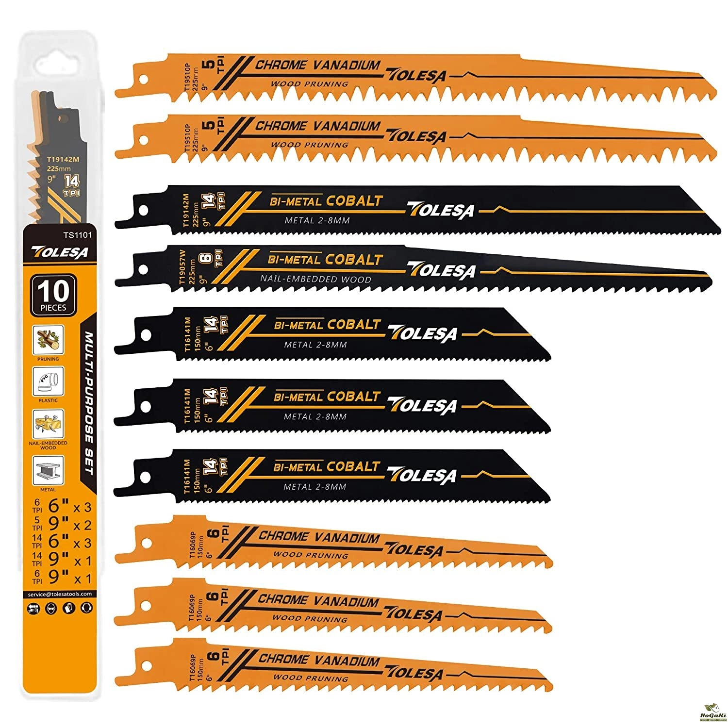 TOLESA 10PCS Reciprocating Bi-metal Saw Blades for Wood Pruning PVC Cutting Heavy Metal Cutting Metal Tube Sheet for Window Door