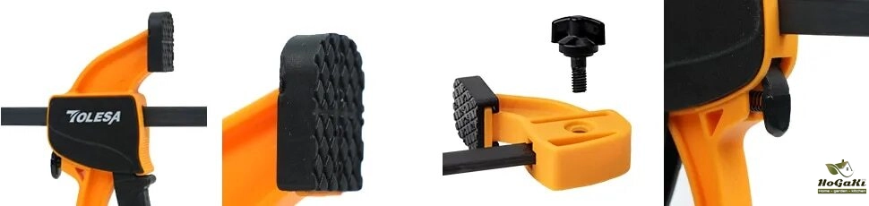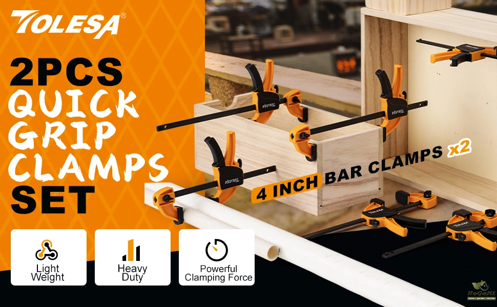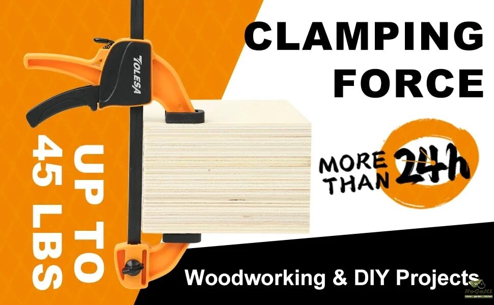 The wood clamps are made of high-density and lightweight reinforced nylon that resists corrosion and provides optimal and mechanical overall clamping performance. And the guide bar is made of high-density steel, which is rust-resistant and will not break or deform easily.