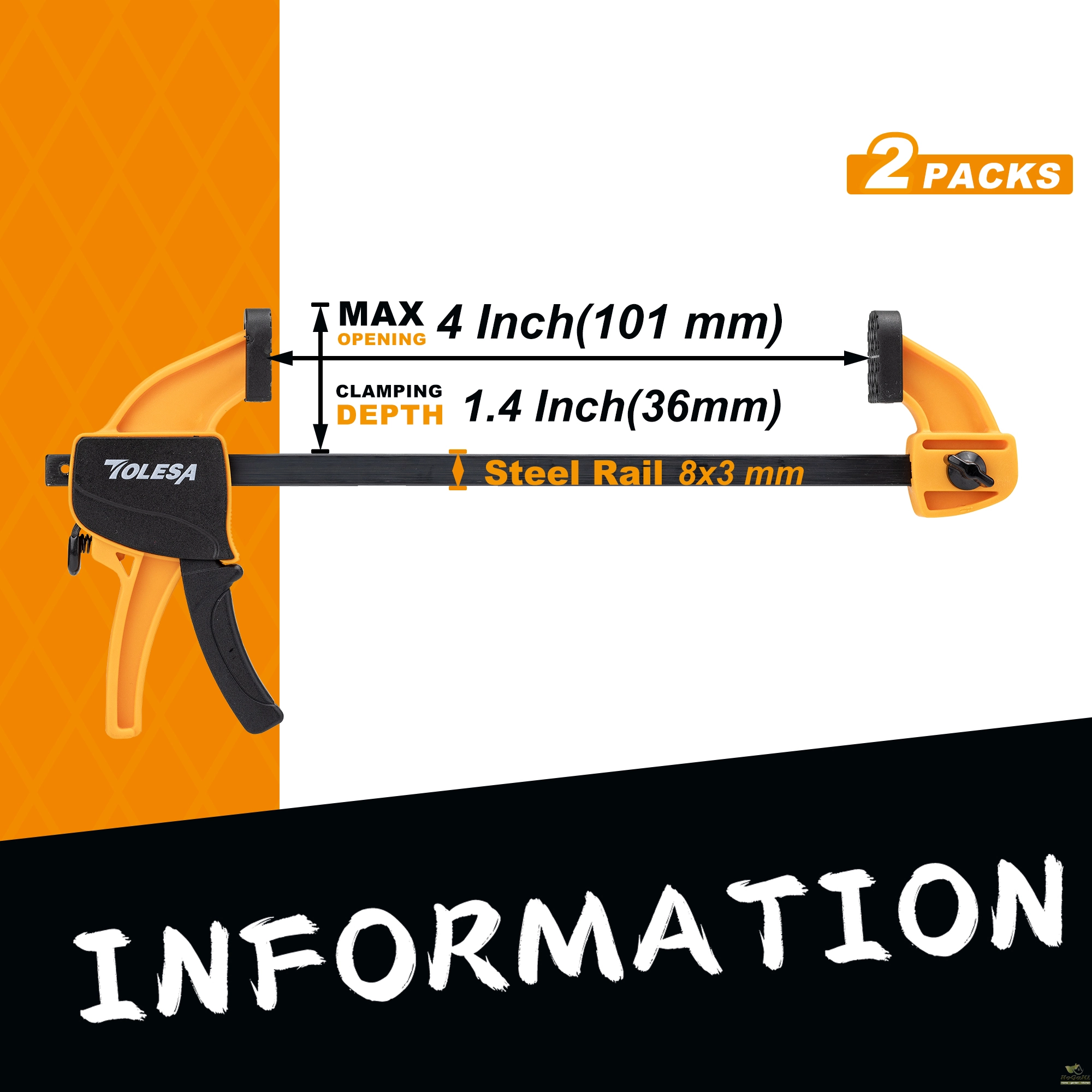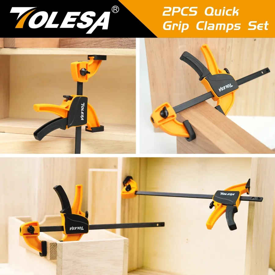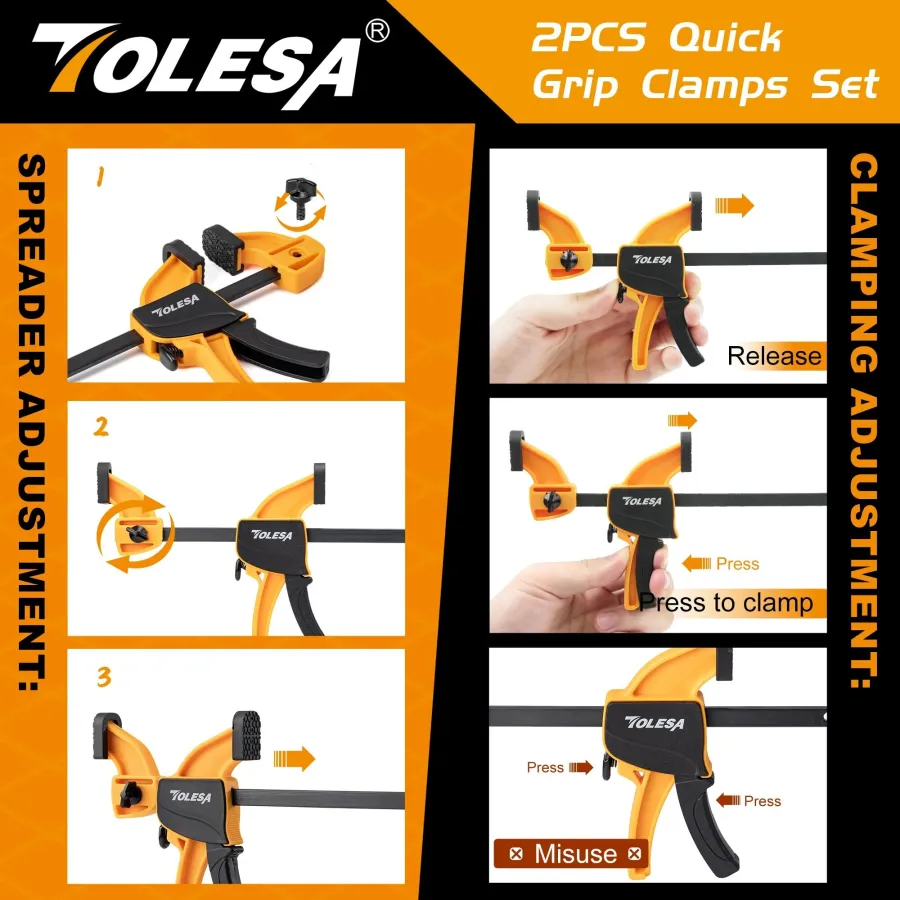 TOLESA 4"/6" Bar Clamps for Woodworking, 2PCS One-Handed Clamp / Spreader, Wood Clamp Set, Light-Duty Quick-Change F Clamp