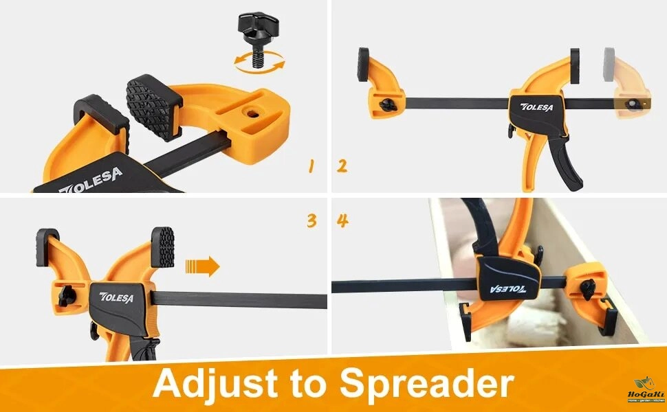 【Clamp And Spreader】4/6 inch quick grip clamps is used in two ways, clamp or spreader. Easy to reverse jaws can turns clamp into spreading clamp or stretching tool.