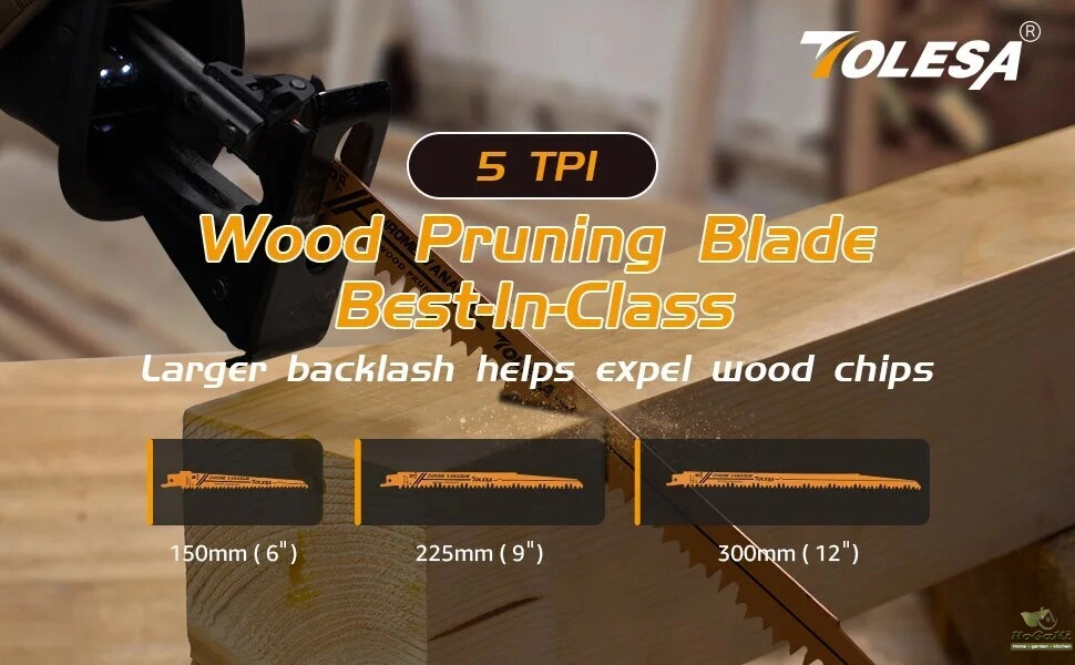 TOLESA Wood Pruning Reciprocating Saw Blades 6 inch 5 TPI Sawzall Blades Green Wood Construction Wood Cutting and PVC Pipe Cutting CRV Sharp Ground Teeth for Quick Cutting Sabre Saw Blades 5 Pack