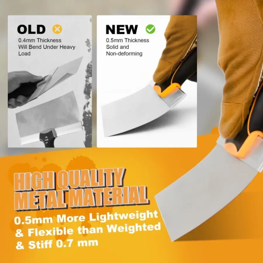The putty knife is made of ultra-thin, lightweight stainless steel. Waterproof, rustproof and easy to clean.Lighter weight for long working hours, saving your energy and preventing wrist fatigue.