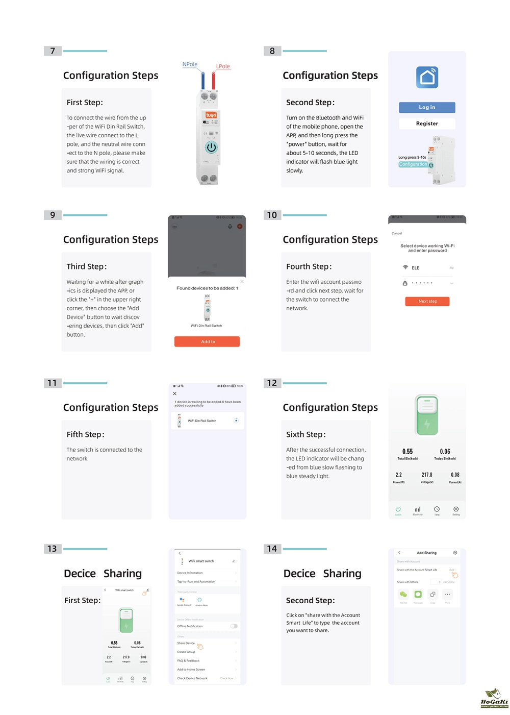 Wiring: Power must enter from the top and must be Live line + Neutral Line (L+N). Live line + Live line (L+L) cannot be used.