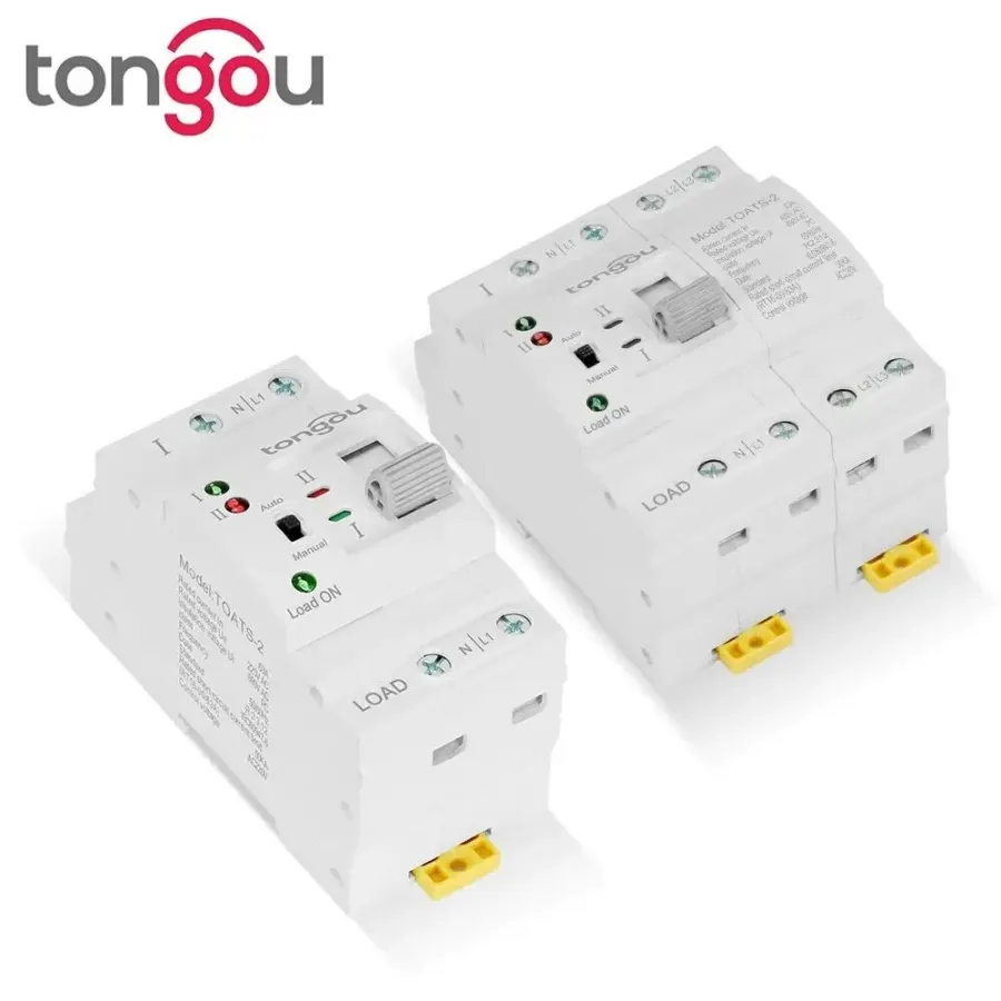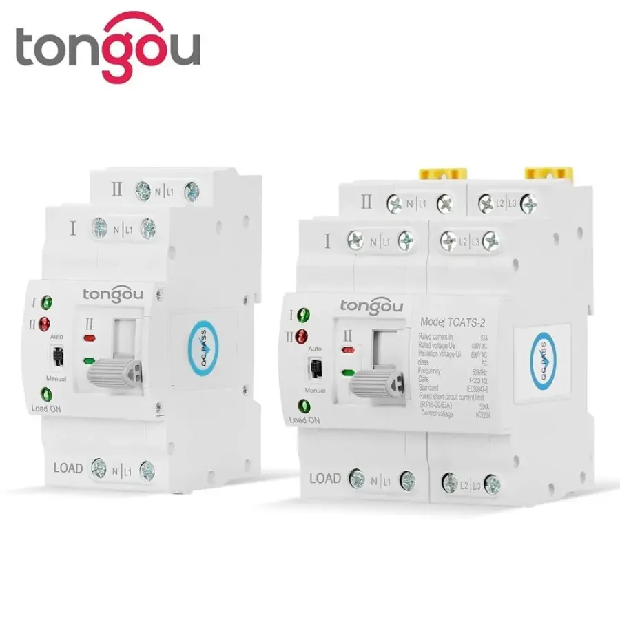 TOATS-2 automatic transfer switch is a PC class infrequent change-over switch, with two-station design (commonly used for A and standby for B), suitable for AC systems with AC 50-60hz and rated current 6A-63A. The main function of the automatic transfer switch is when the main power (common power supply A) fails, the ATS will automatically switch to the backup power (Backup power supply B) to continue working (switching speed <75 milliseconds), which can effectively solve the troubles caused by power outages.