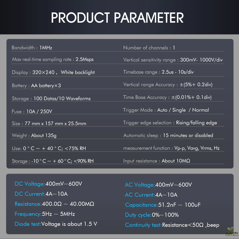 ◆ 2.5Msps high-speed sampling, 1MHz analog bandwidth, 4000 count digital multimeter.