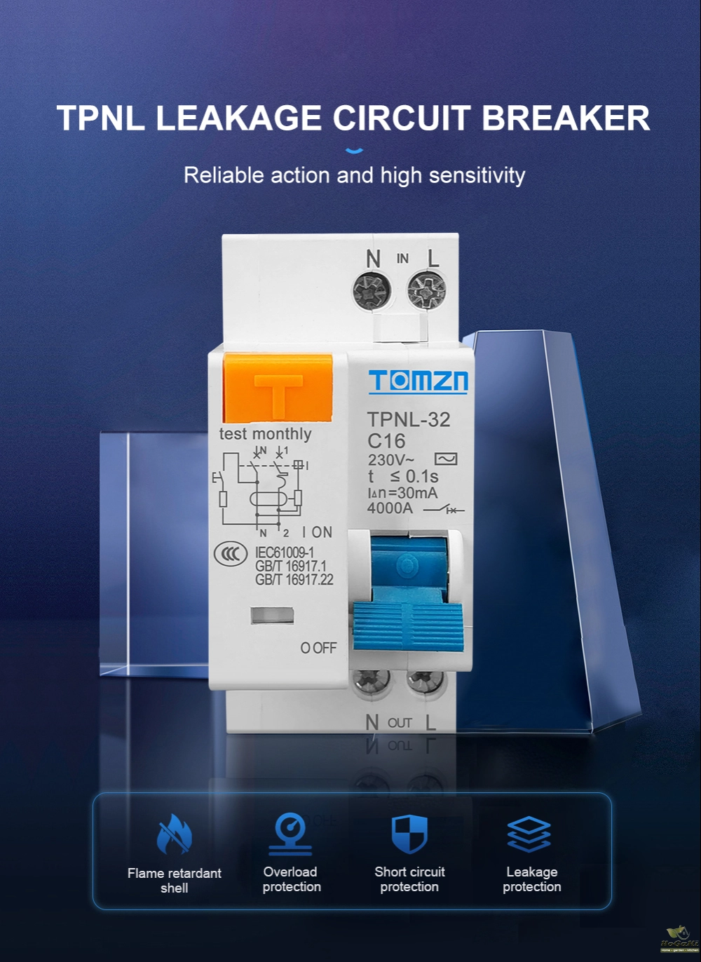TPNL DPNL 230V 1P+N Residual current Circuit breaker with over and short current Leakage protection RCBO MCB