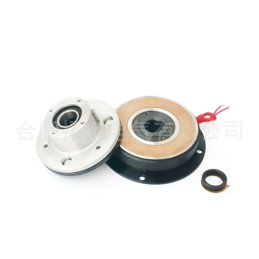 The dry single-plate electromagnetic clutch is mainly composed of a magnetic yoke, an armature, a spring plate, a rotor, a flange, etc. The magnetic yoke coil is energized to generate a magnetic field to attract the armature to generate friction torque to combine or brake the driven part, and a special shaped spring plate is used to reset. The product structure is simple, the braking delay time is short, and the braking torque is large. It is suitable for occasions where timing bonding or brake positioning requirements are required in mechanical transmission systems, such as precision machine tools. Clutch and positioning in transmission systems such as printing machinery, packaging machinery, experimental equipment and office machinery.