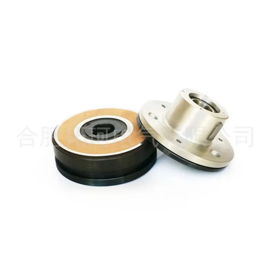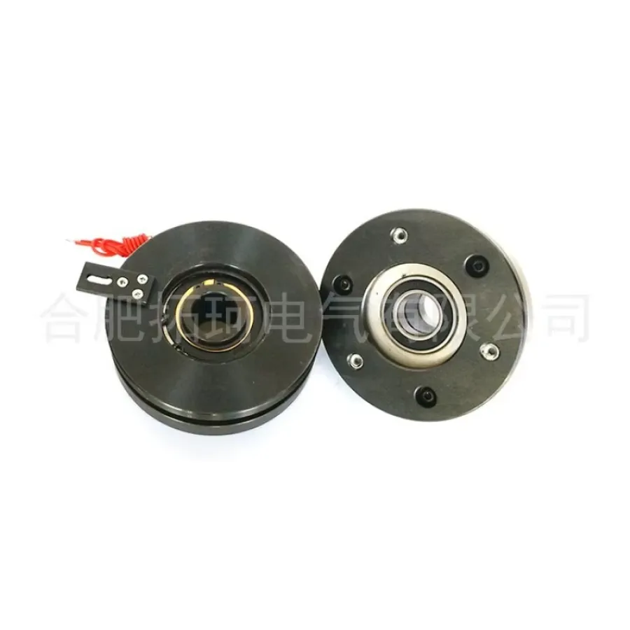 Dry single plate electromagnetic clutch mainly consists of magnetic yoke, armature, spring plate, rotor, flange, etc. The magnetic yoke coil is energized to generate a magnetic field, which attracts the armature and generates frictional torque, causing the driven part to engage or brake, and is reset with a specially formed spring plate. The product has a simple structure, short braking delay time, and high braking torque. Suitable for situations in mechanical transmission systems that require timed coupling or brake positioning requirements. Like precision machine tools. Clutch and positioning in transmission systems of printing machinery, packaging machinery, experimental equipment, and office machinery.