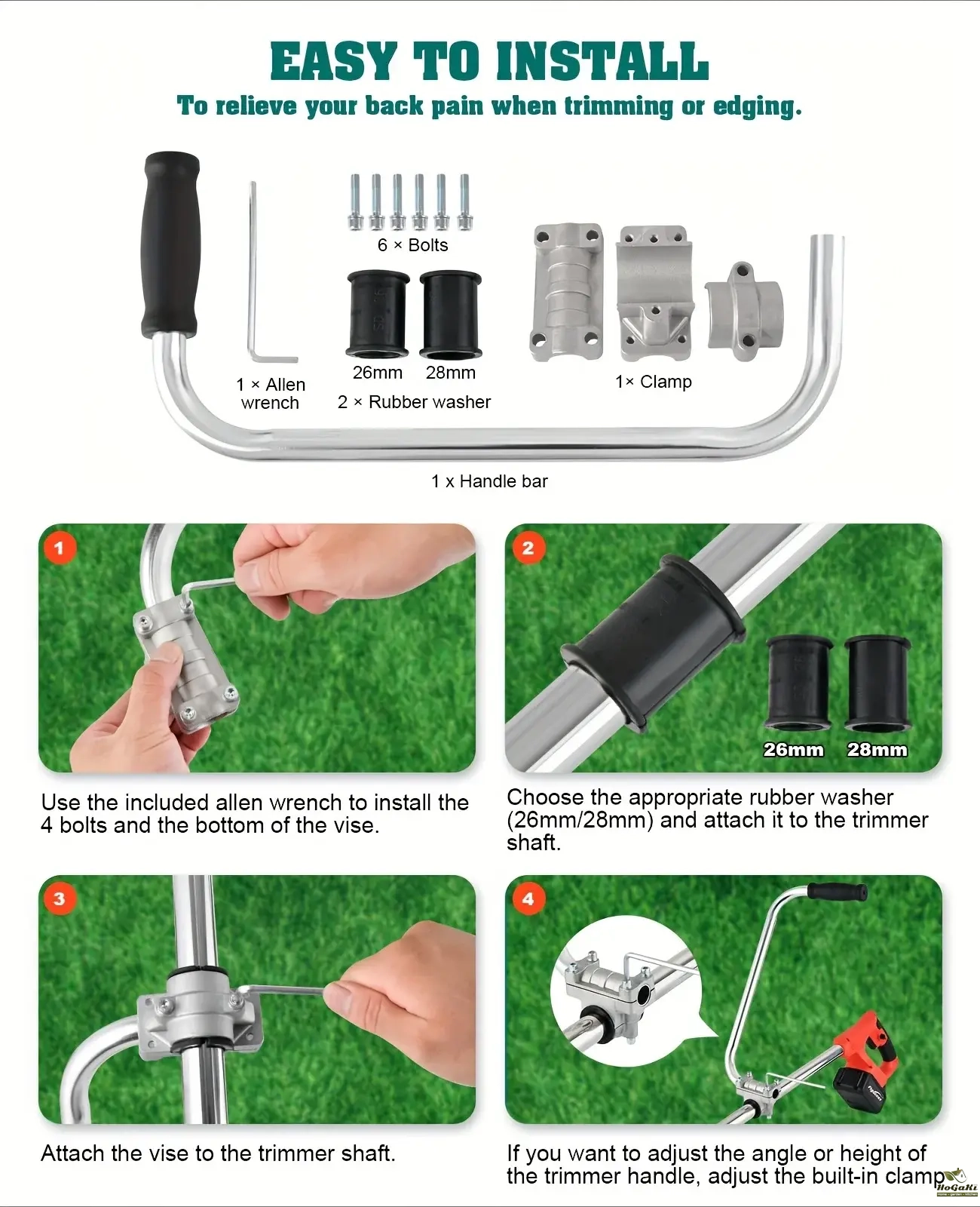 【Increase Comfort & Reduce Pain】trimmer grip handle is an attachment that can be installed onto the main shaft of a weed trimmer or edger. It allows the operator to grip the weed trimmer or edger ergonomically, maintaining a more upright position and reducing back strain and injury. This increases comfort and reduces pain during use.