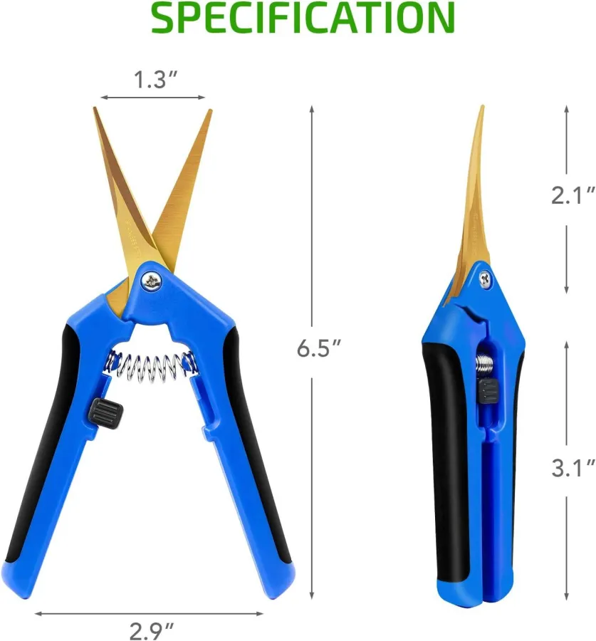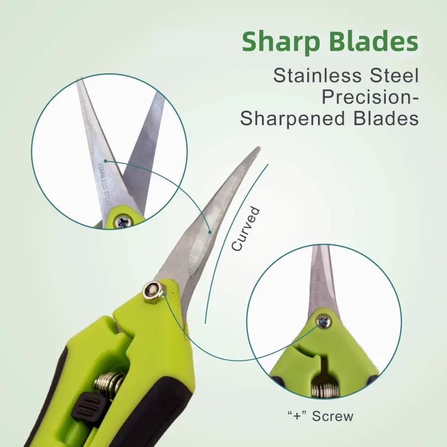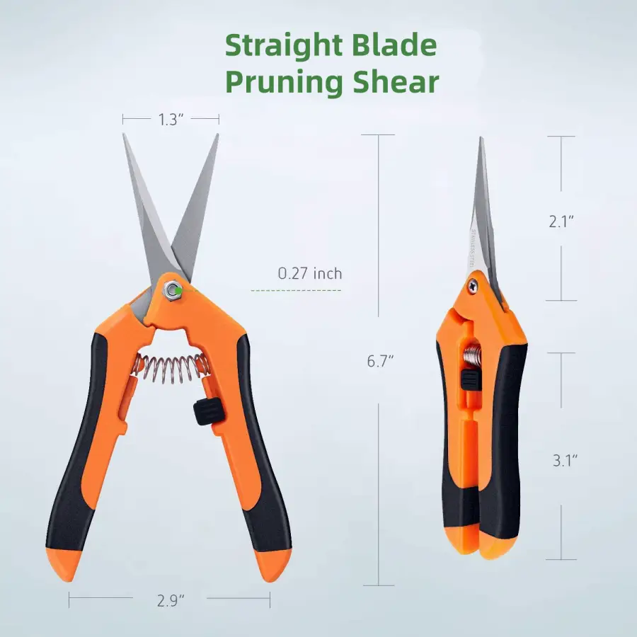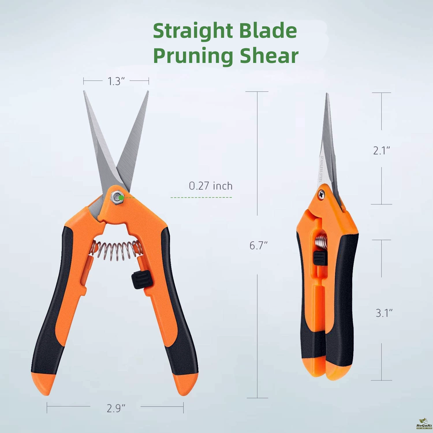 6.5 Inch Gardening Hand Pruner Pruning Shear Trimming Scissors Stainless Steel Straight/ Curved Blades for Buds Herbs