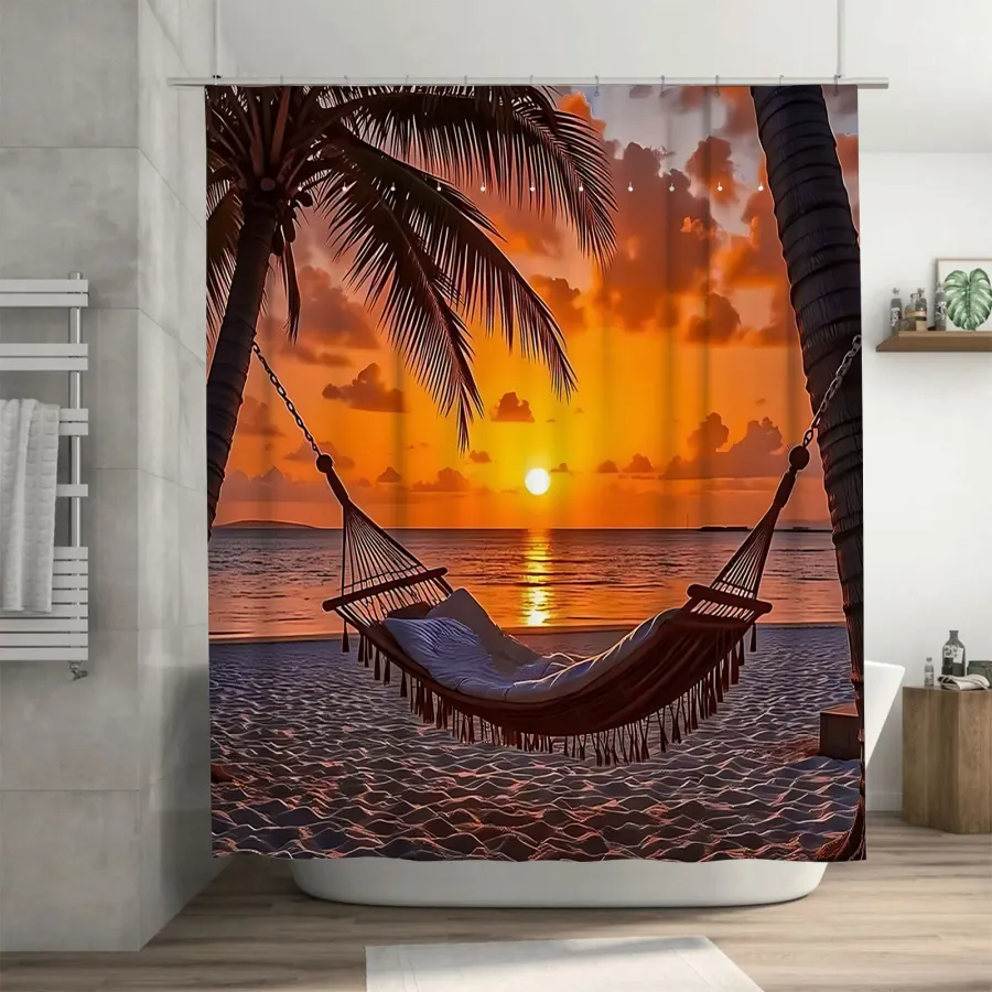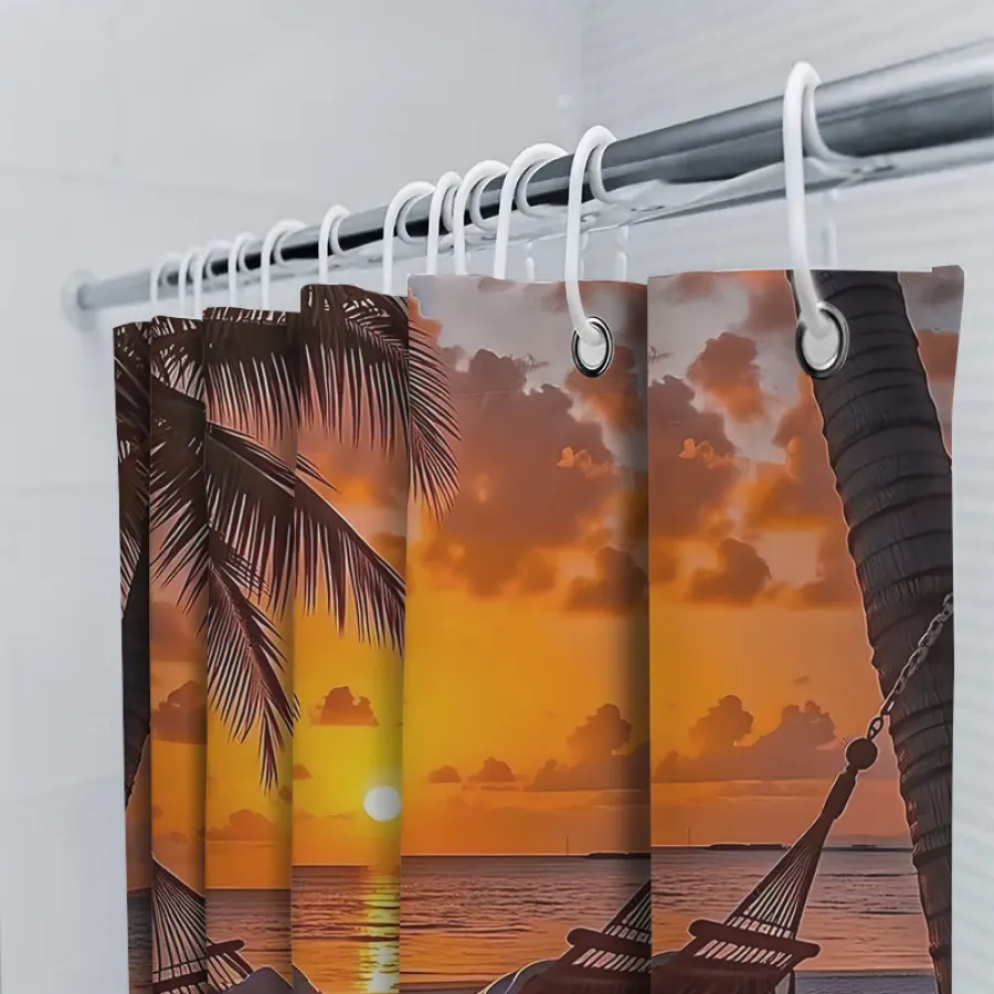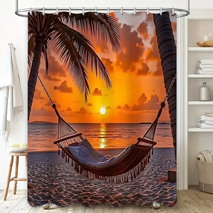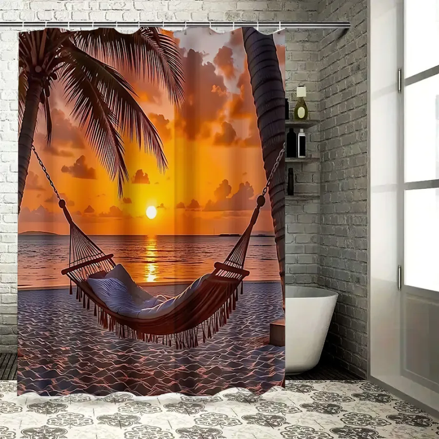 Ocean Shell Shower Curtain, Ocean Beach Shell Starfish Summer Bathroom Decorative Shower Curtain, Waterproof Shower Curtain with