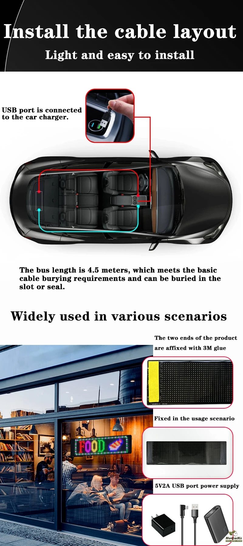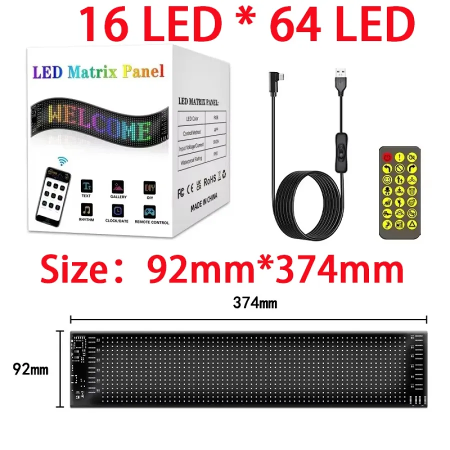The LED matrix panel is light and thin,uses RGB lamp beads,Flexible board design,can be bent and folded at will.
