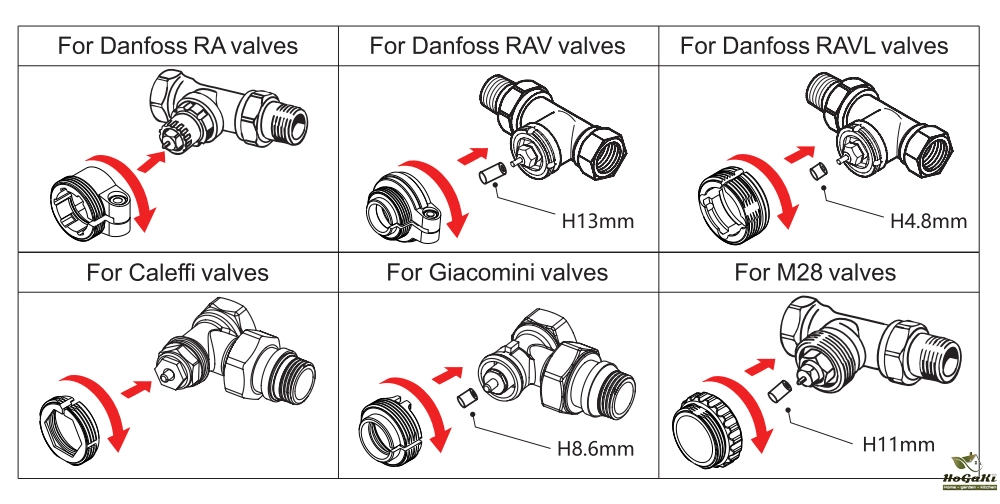 Applicable to Danfoss RA / RAV / RAVL valves / Caleffi valves / Giacomini valves / M28 valves