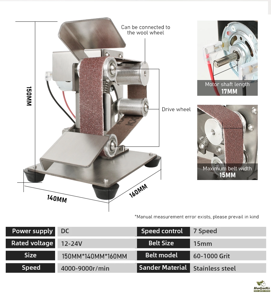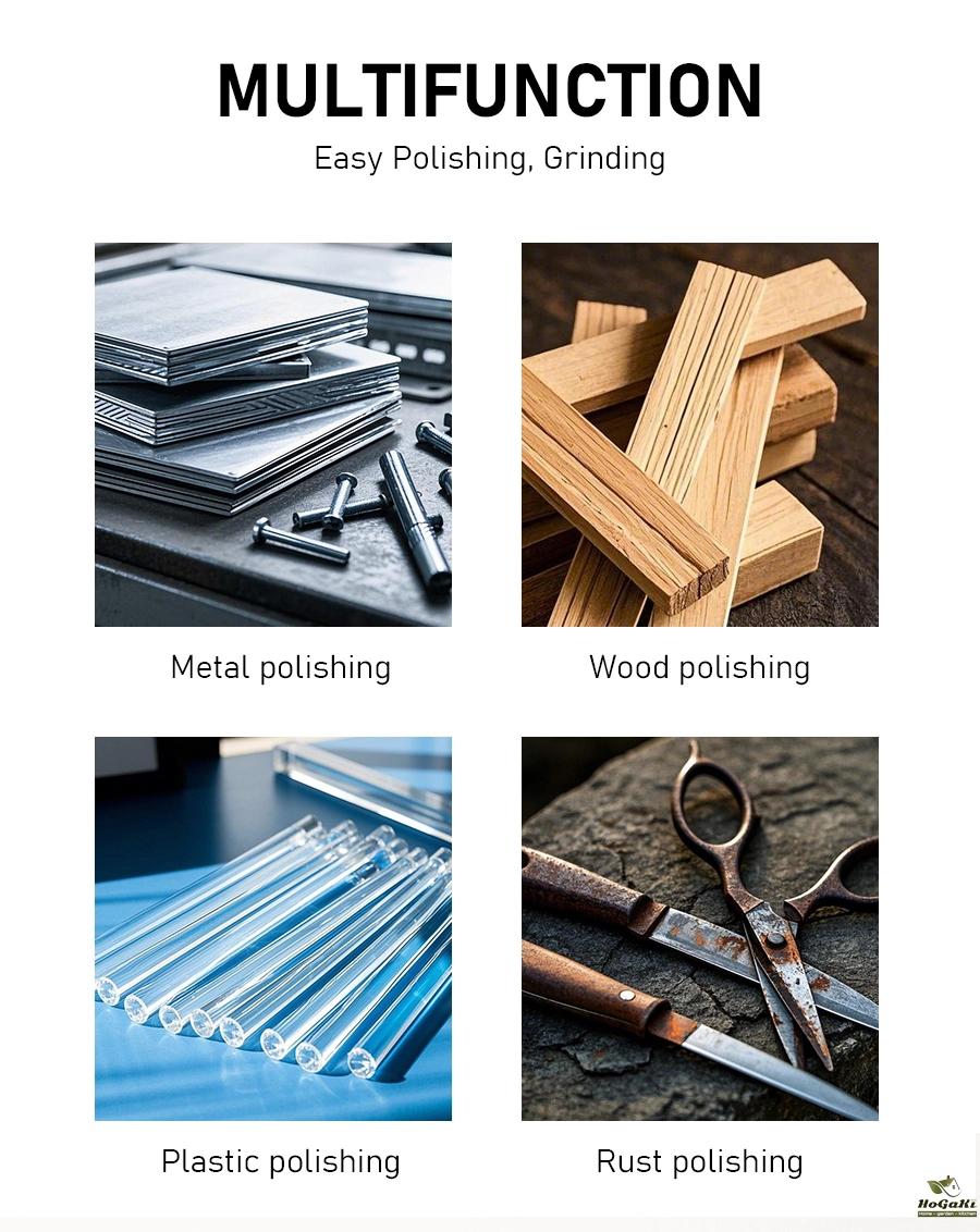The abrasive belt wheels have built-in double bearing, non-slip design and smooth operation.