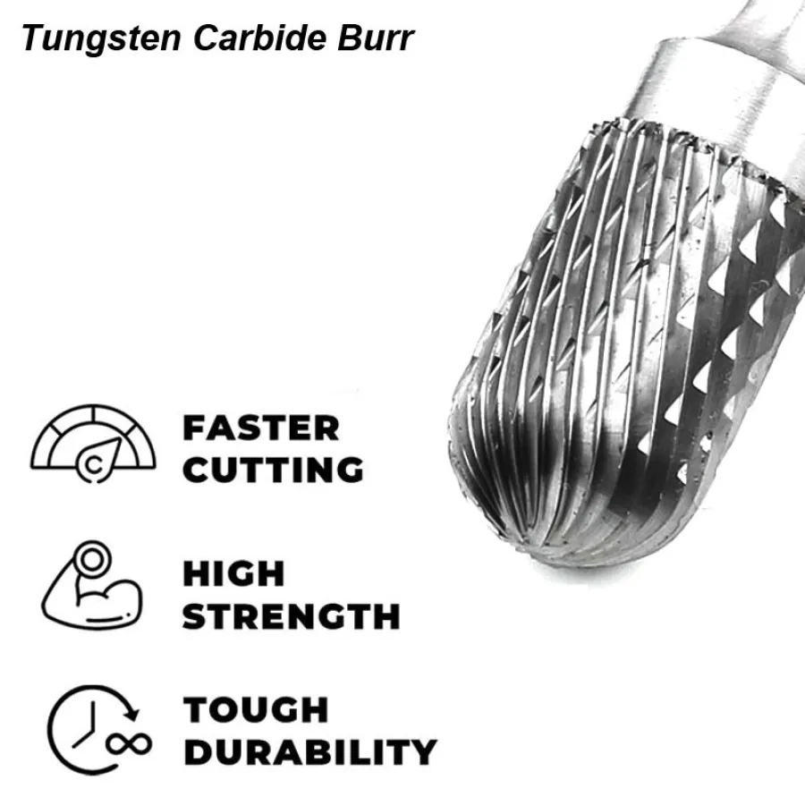 【Tungsten Carbide Material】 Carbide burs are made of tungsten. Due to the extreme hardness of the Tungsten Carbide they can be used on much more demanding jobs than HSS (High Speed Steel). They maintain sharper cutting edges for longer periods of time due, and tolerate higher temperatures without warping when you apply friction.