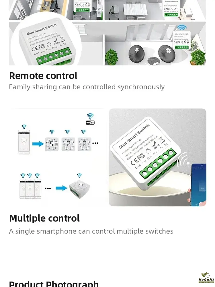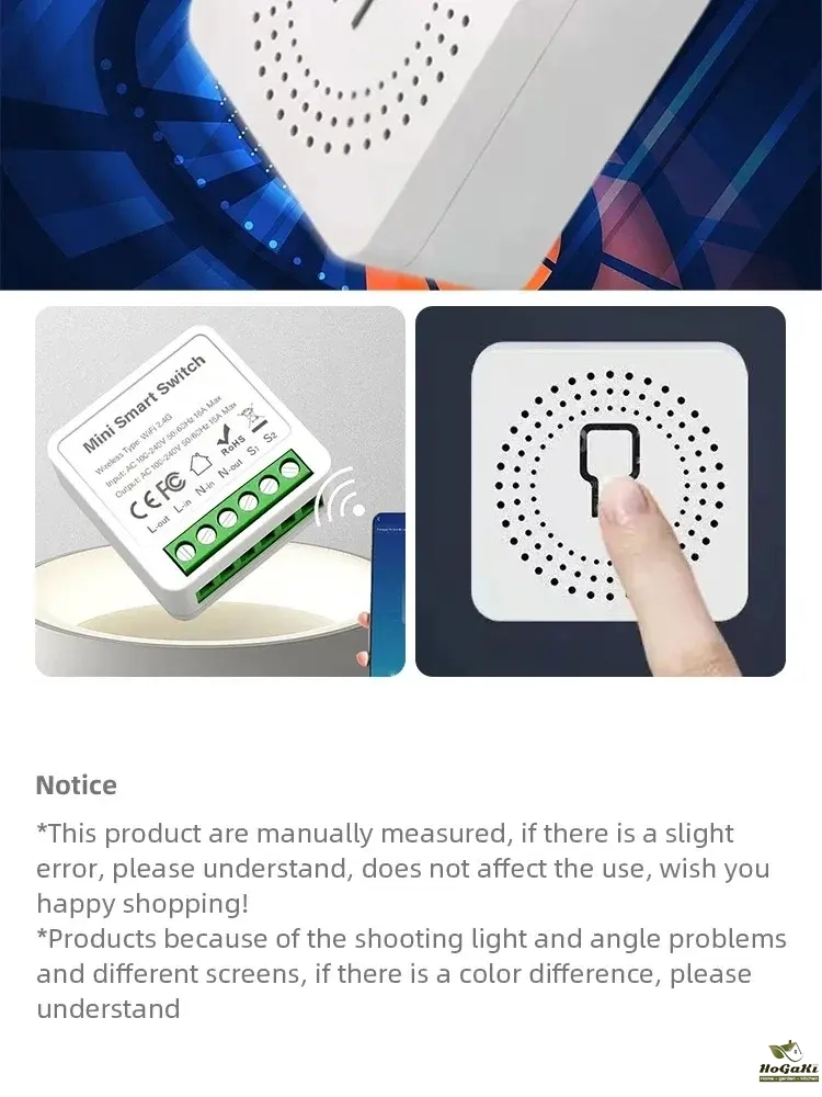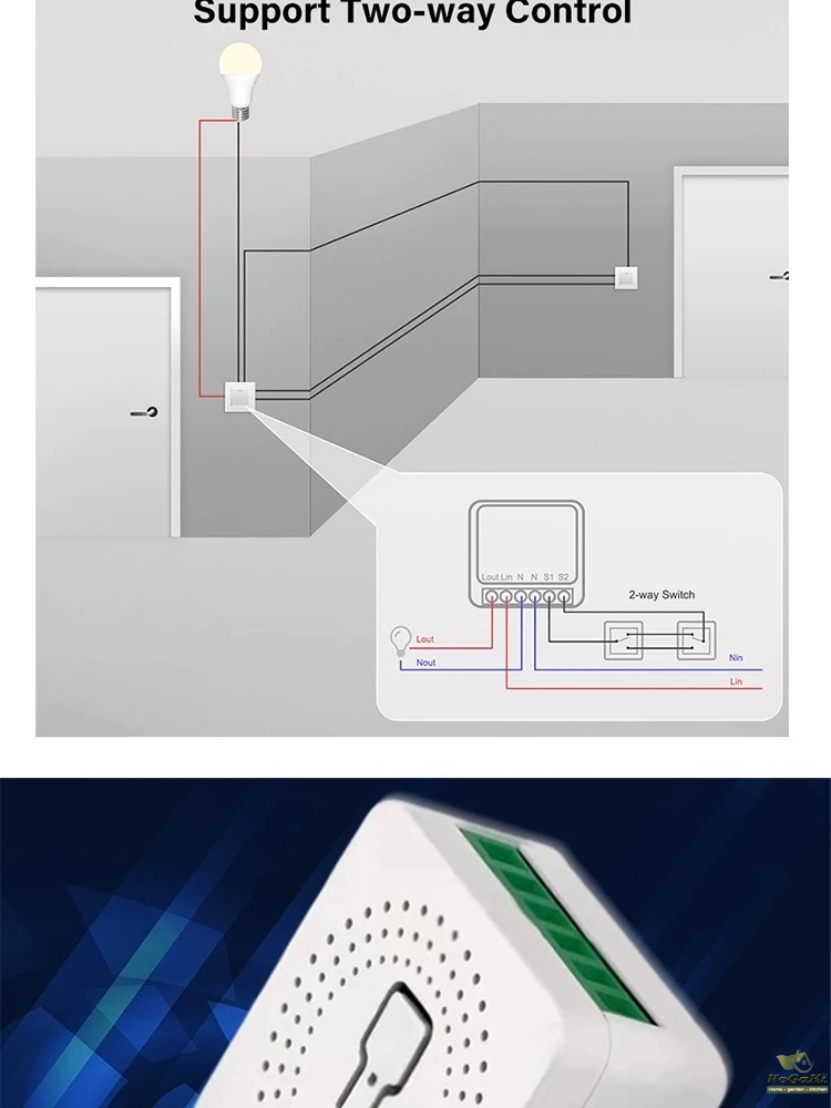 It can also be connected behind the switch to support single control switch and dual control switch. It can be directly installed in the switch box to hide the switch module. It can also be installed on the dual-control switch without affecting the use of the dual-control switch.