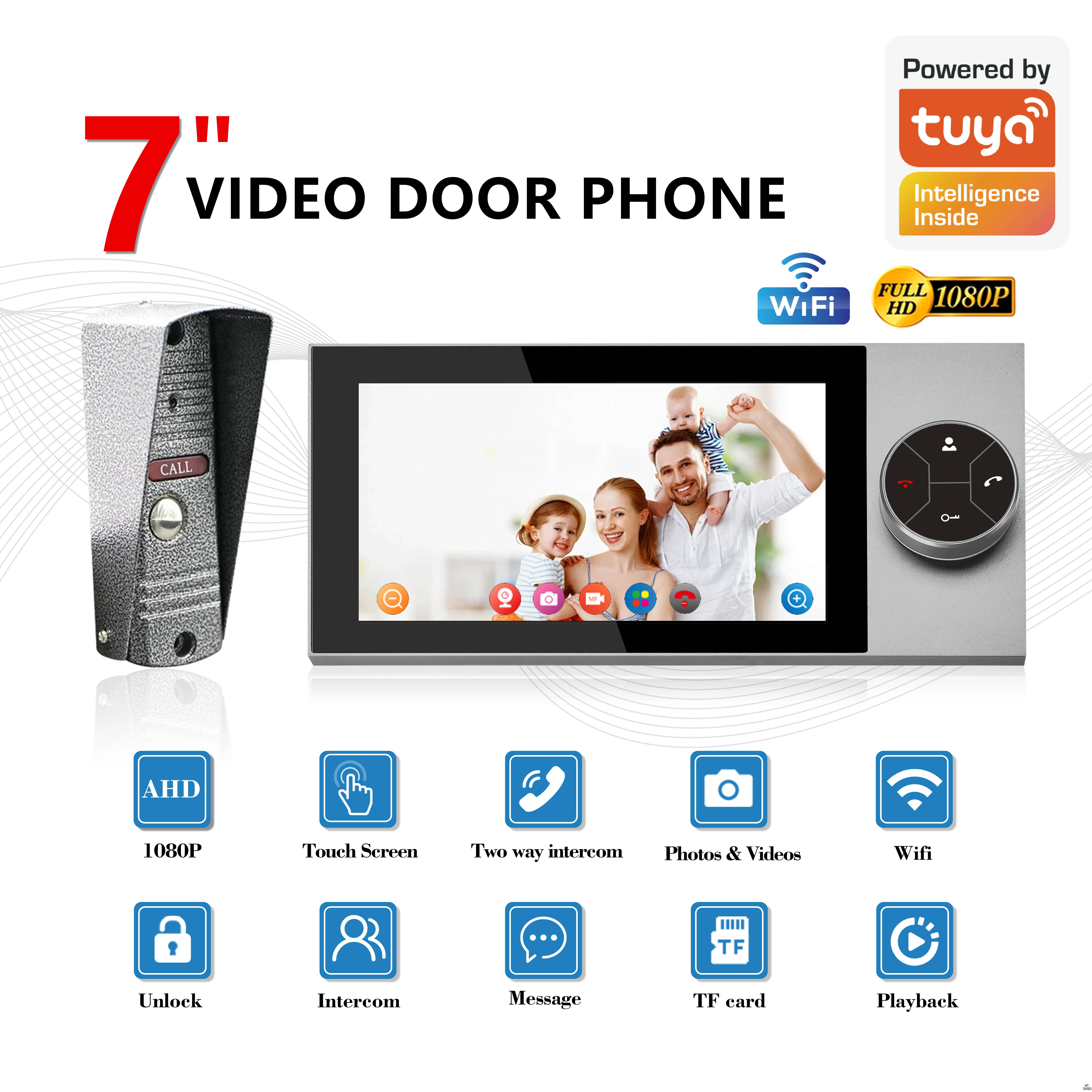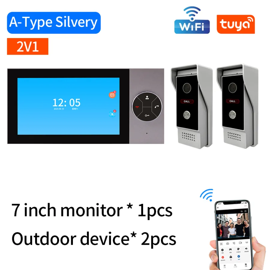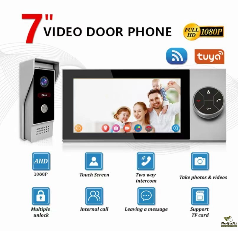 Tuya App Wifi Wire 2.4Ghz 7-inch Video Doorbell Indoor Monitor Waterproof Outdoor Camera Visual Intercom System Kit Twoway Video