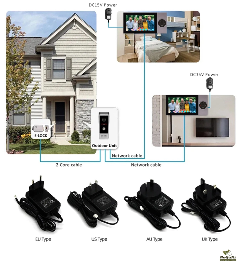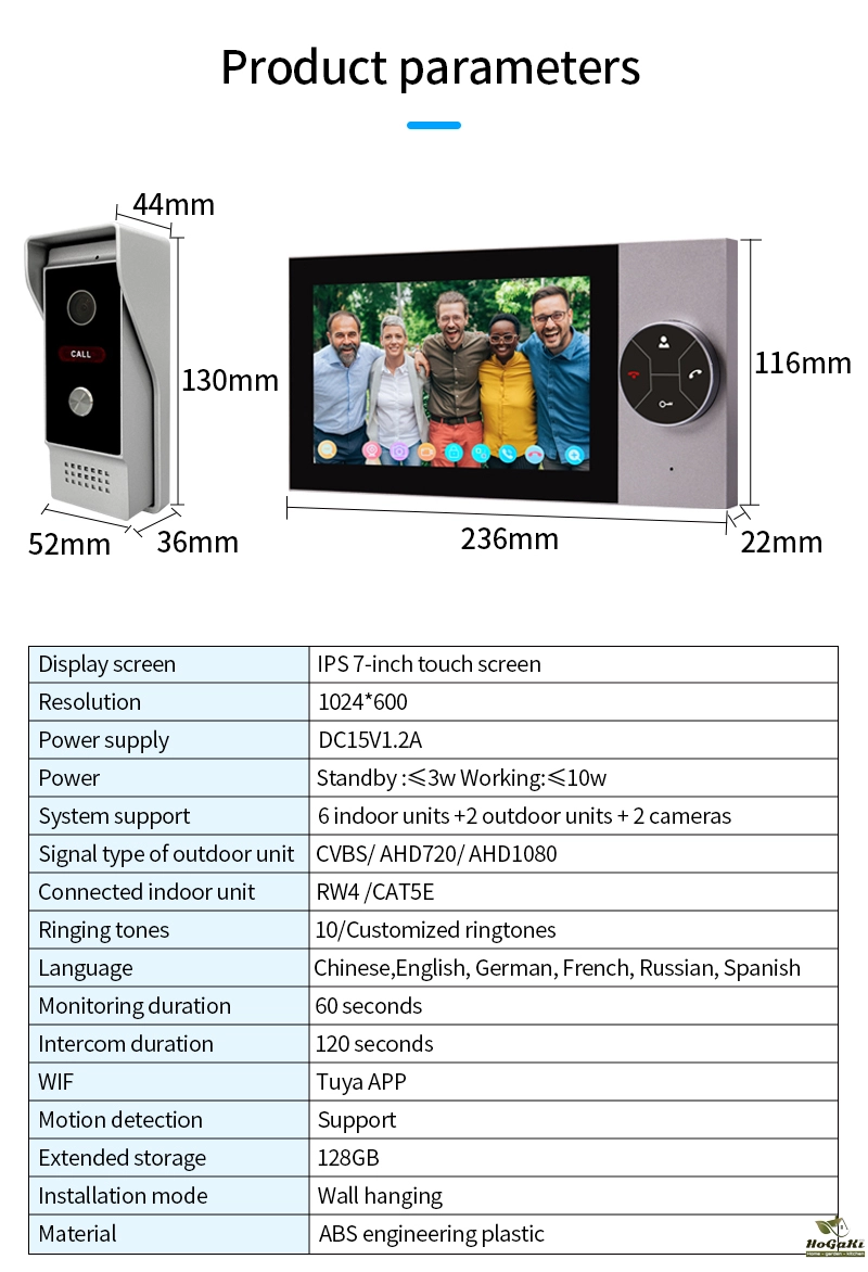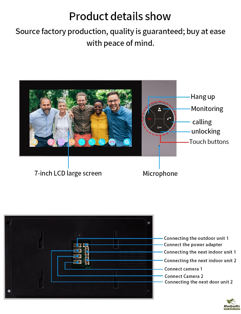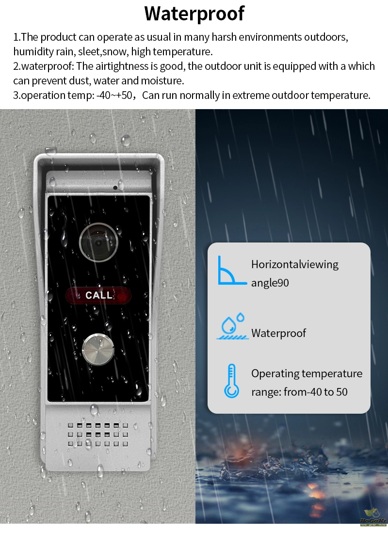 The product adopts the industry's common 4-wire system (RVV-4) connection, the indoor unit and outdoor unit for direct connection, simple and practical. While our products provide video intercom with visitors, they can also remotely unlock the door through the indoor unit, they can also remotely unlock the door through the indoor unit, allowing you to open the door with just one click without leaving home.This series of products adopts a new generation of visual doorbell program, stable and smooth video effect, strong anti-interference ability, effective use of the transmission distance up to 200 meters, outdoor unit using AHD HD camera, indoor unit using HD display, the image and intercom effect than the traditional common clear video doorbell (CVBs) to enhance the effect of 70%, HD high-definition will certainly bring you a new visual experience.This series of products support the maximum of two outdoor units and six indoor unit swith each other, do not need to add any relay equipment, cost savings. On this basis, we have reserved 2-way camera access function, which is convenient for customers to expand freely in multiple scenarios.